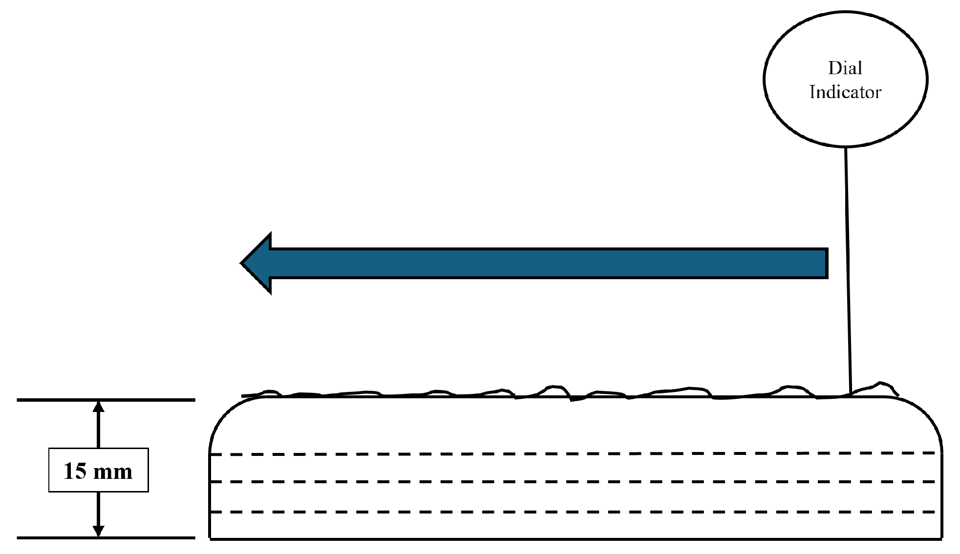 Surface waviness was measured using a dial drop indicator (INSIZE) mounted on a height gauge placed on a precision surface plate as shown in