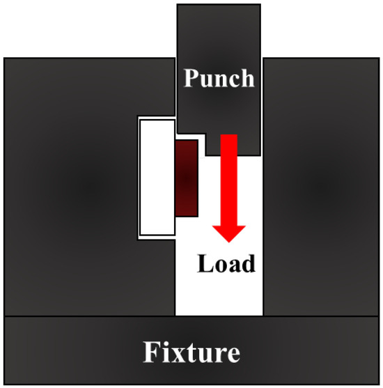 Shear tests were performed using a universal testing machine (AGS-X, Shimadzu) at a constant crosshead speed of 1 mm/min. The maximum load at fracture was recorded and divided by the apparent bonding area of 100 mm2 to calculate the shear strength. All dimensional and stress values are reported in millimeters (mm) and megapascals (MPa), respectively. The cross-sectional and fracture morphologies were examined using optical microscopy (OM) and scanning electron microscopy (SEM, Axia ChemiSEM, Thermo Fisher Scientific). A schematic illustration of the shear testing configuration is shown in Figure 4.