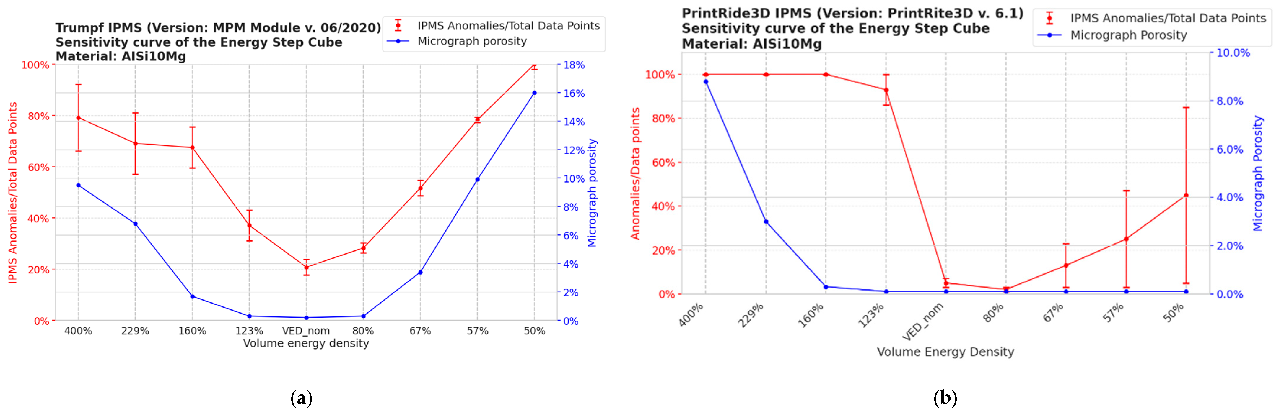 - Trumpf IPMS allows for greater VED variations before significant anomalies are detected. It is important to question whether the sensitivity in the nominal range is sufficiently accurate.