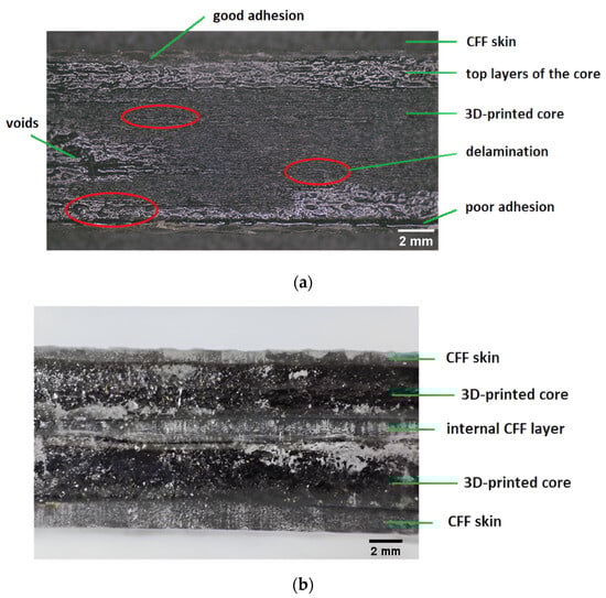 Manufacturing techniques for sandwich-type composites vary depending on application requirements and cost considerations, ranging from simpler methods such as hand lay-up and vacuum bagging to more advanced processes including vacuum infusion and compression molding. In recent years, advances in additive manufacturing (AM) technologies have further expanded the available fabrication methods. The wide availability of FDM materials and the flexibility of AM for cellular core design enable the creation of a vast range of complex sandwich-type composites. The core and skin can either be fabricated separately via 3D printing and subsequently bonded using adhesives or simultaneously fabricated in a single AM process using advanced dual-nozzle 3D printers [,,].