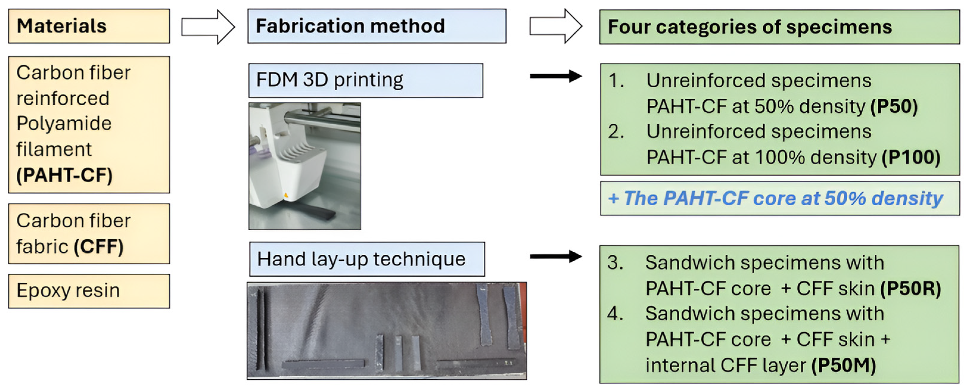 Chicago/Turabian StyleDimitrellou, Sotiria, Isidoros Iakovidis, Gerasimos Stratos, and Dimitrios-Nikolaos Pagonis. 2025. "Experimental Study on Sandwich Composites with Carbon Fiber Fabric Skin and 3D-Printed Carbon Fiber-Reinforced Polyamide Core" Journal of Manufacturing and Materials Processing 9, no. 11: 361. https://doi.org/10.3390/jmmp9110361