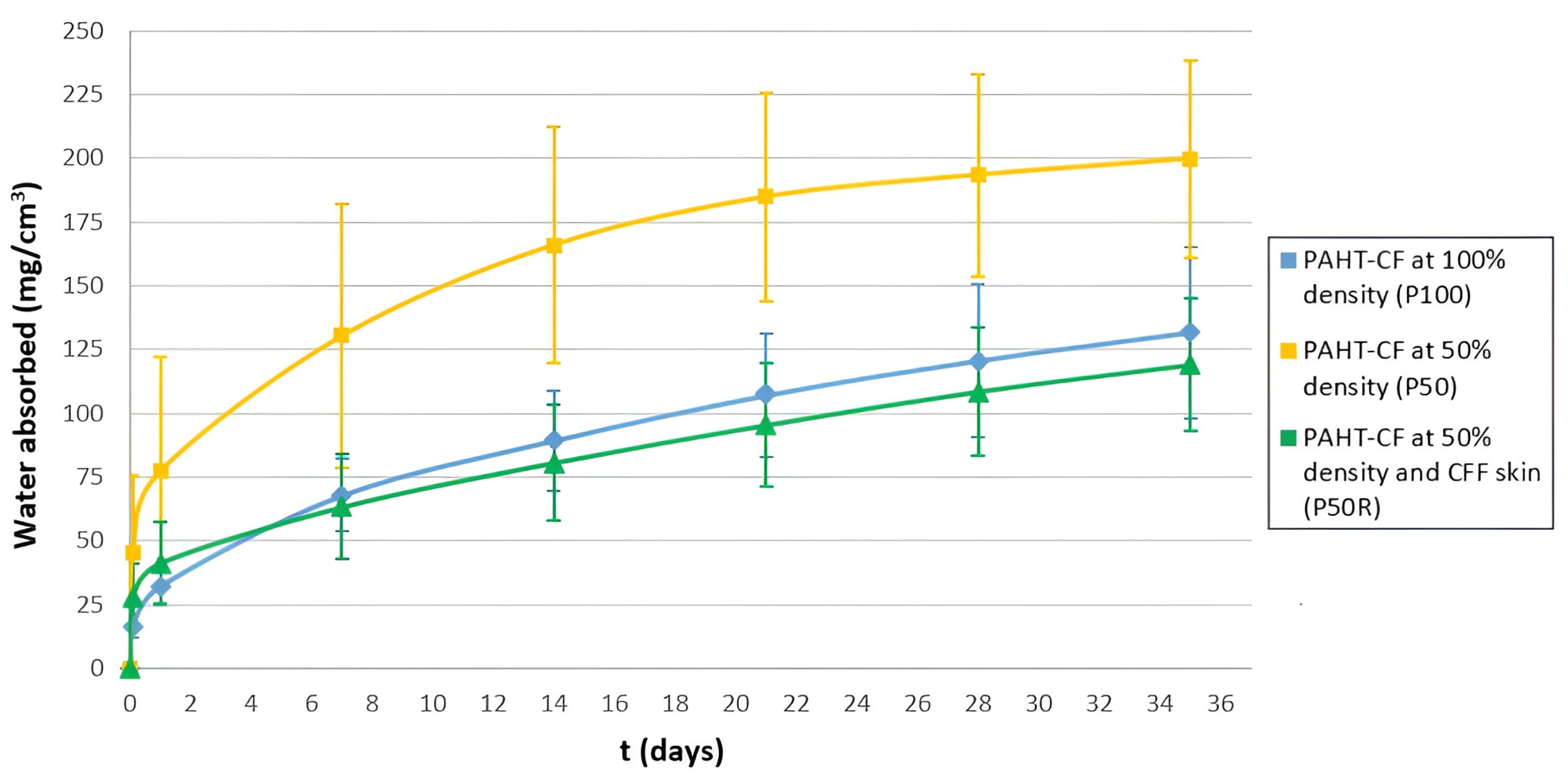 - PAHT-CF is easy to process via 3D printing, provided that sufficient print tests have been conducted to ensure the interaction between printing parameters and final properties. Since temperature and humidity affect the results, using a closed chamber to maintain stable conditions during 3D printing is recommended.