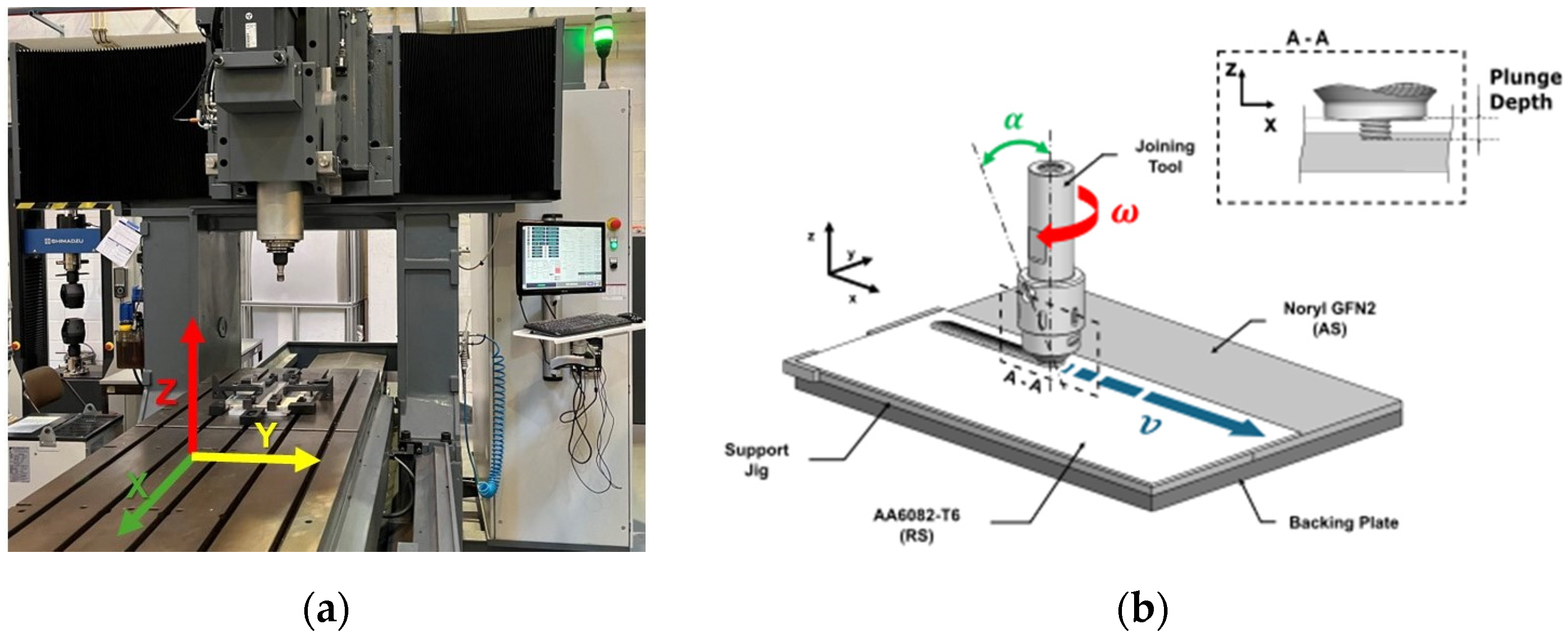 - Melaku, L.E.; Tomków, J. Dissimilar Friction Stir Welding of Aluminum to Polymer: A Review. Int. J. Adv. Manuf. Technol. 2025, 140, 2377–2396. [Google Scholar] [CrossRef]