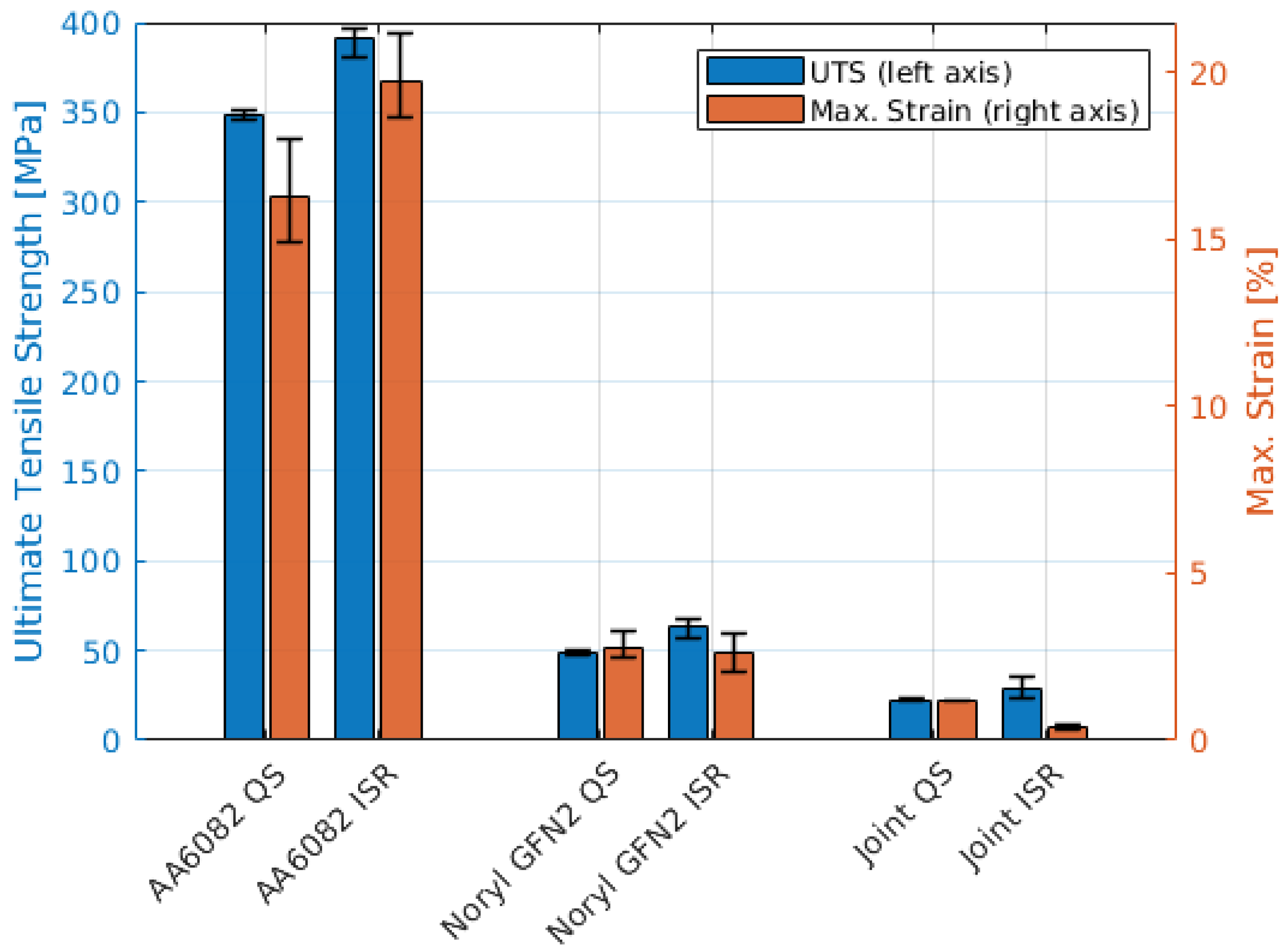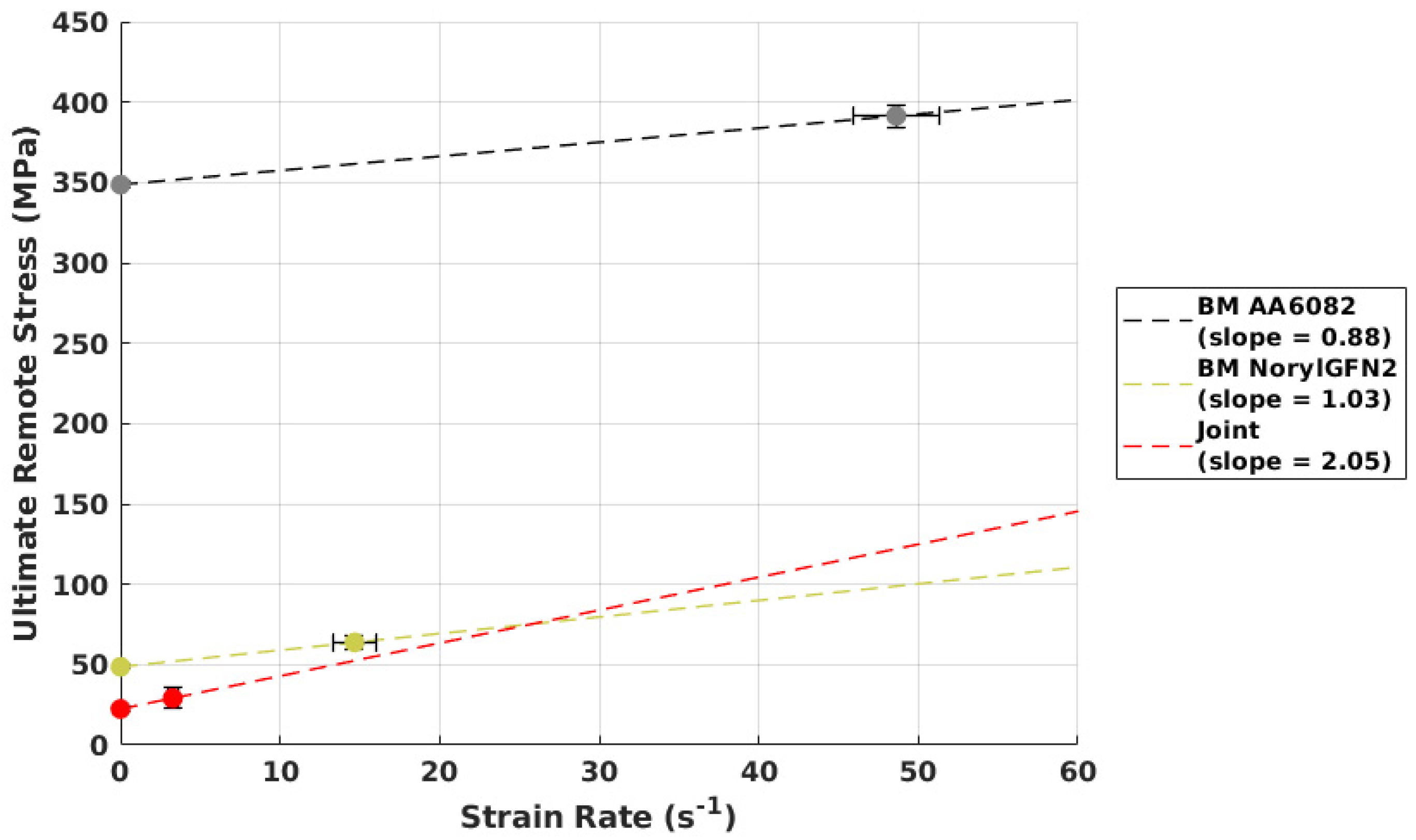 - The glass-fiber-reinforced polymer has a higher strain rate sensitivity than the aluminum alloy, but the dissimilar joints have an even higher strain rate sensitivity;