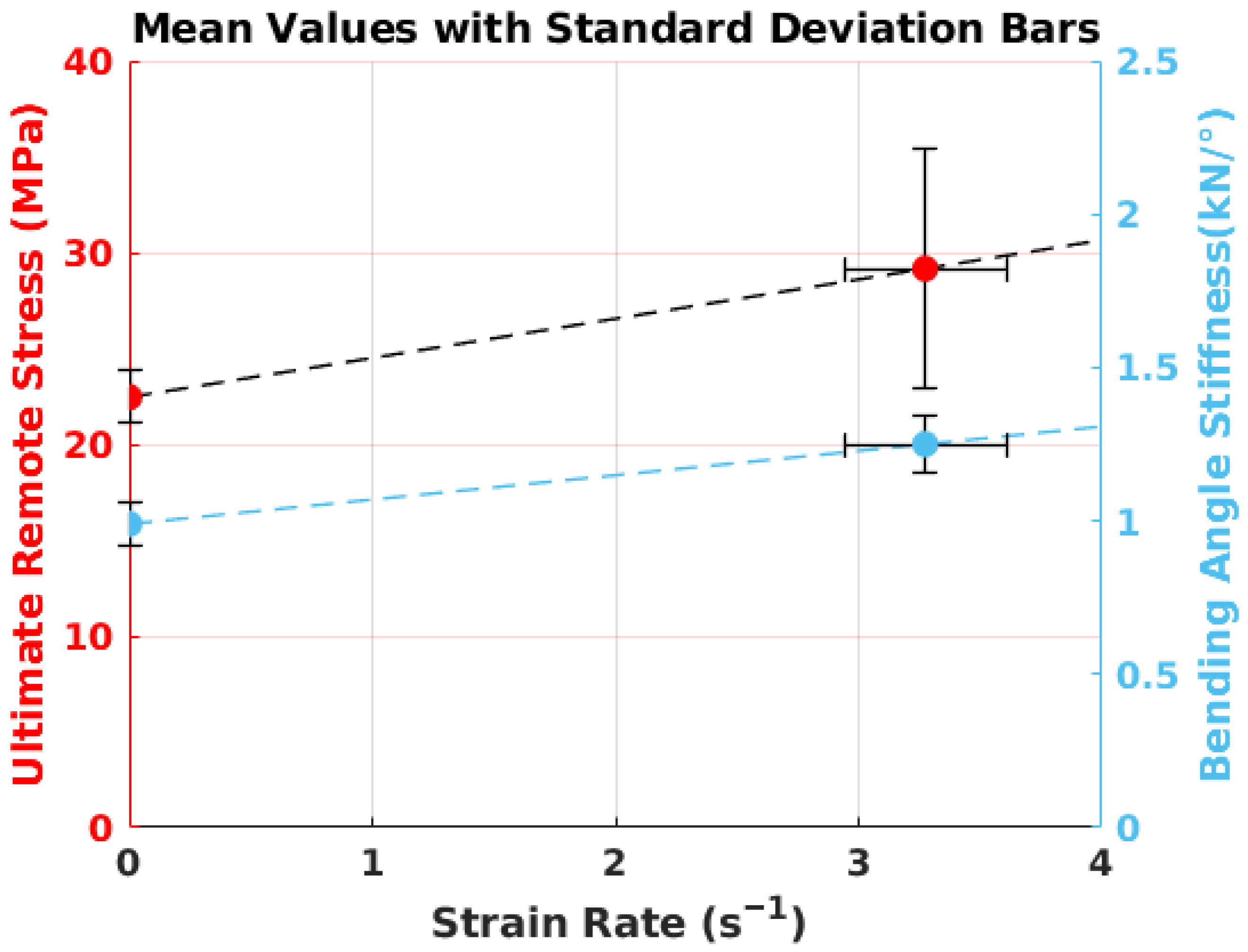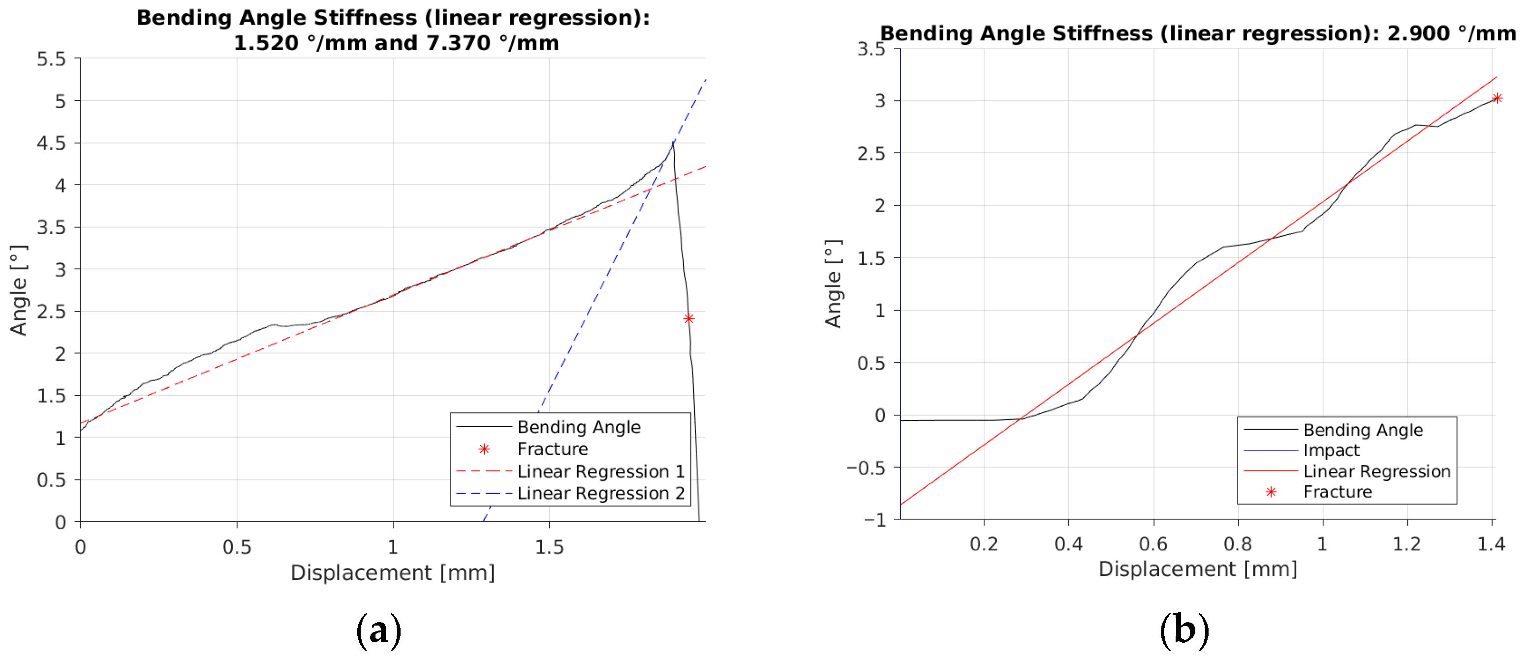 - The bending angle increased linearly with joint loading at an intermediate strain rate, while in quasi-static loading, a rapid increase was found when approaching joint failure;