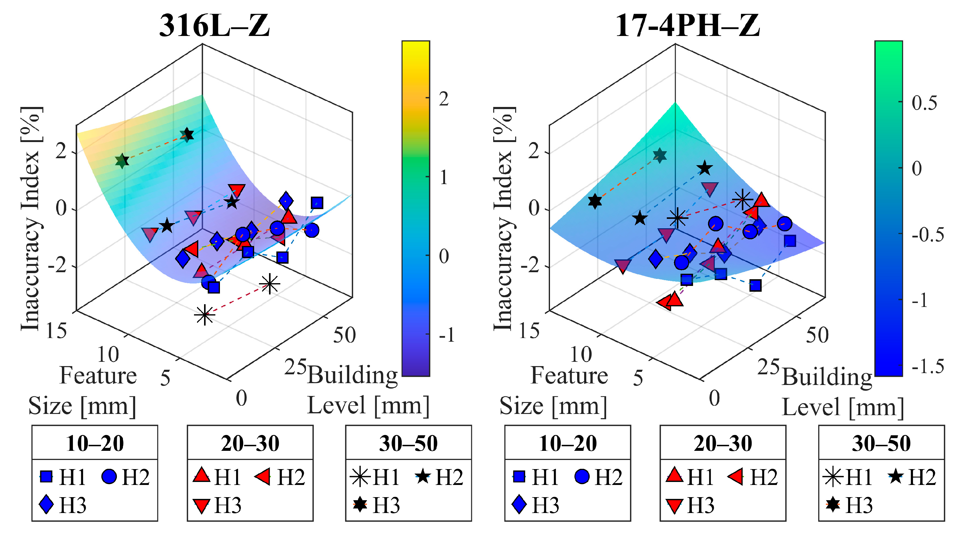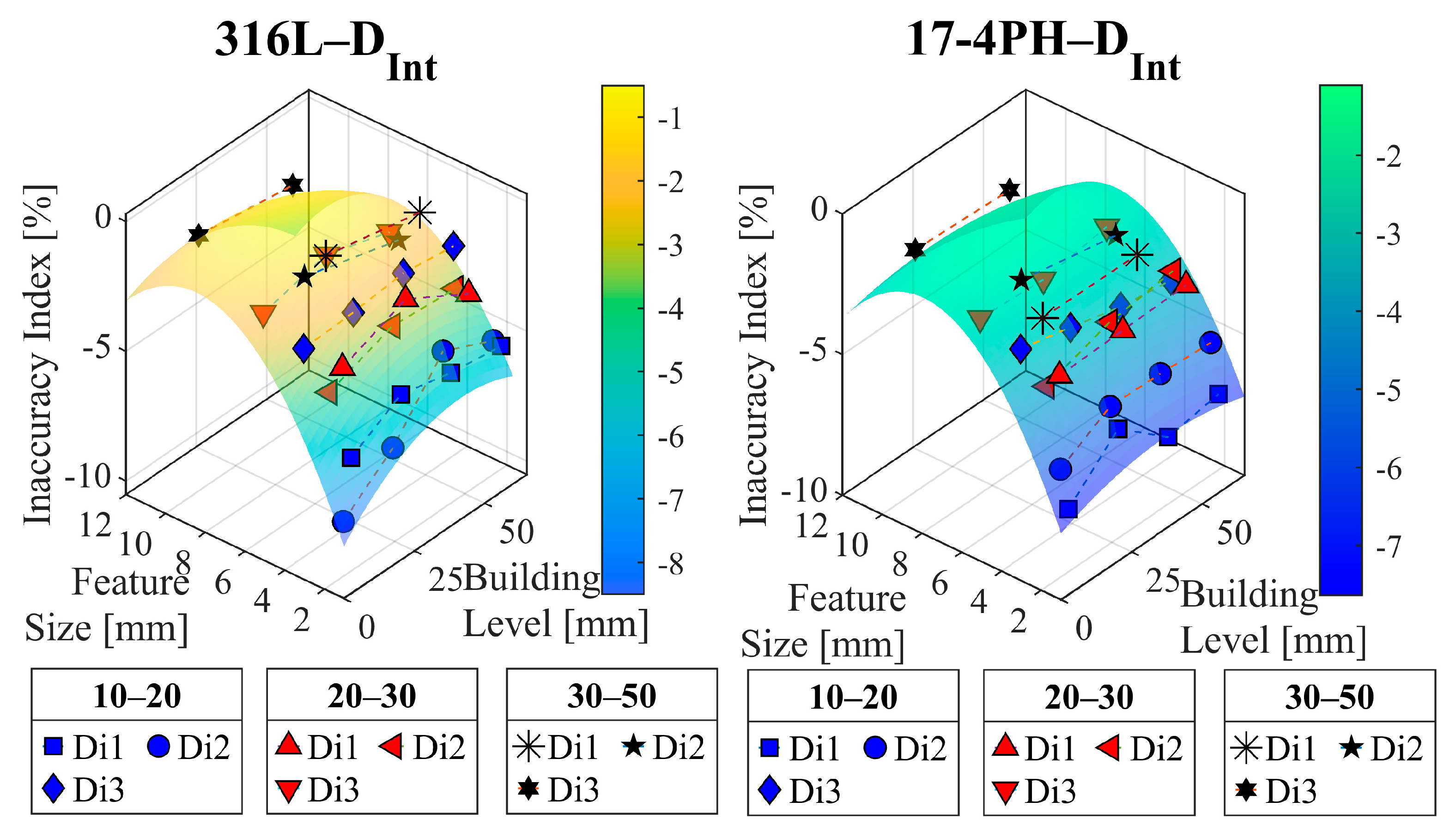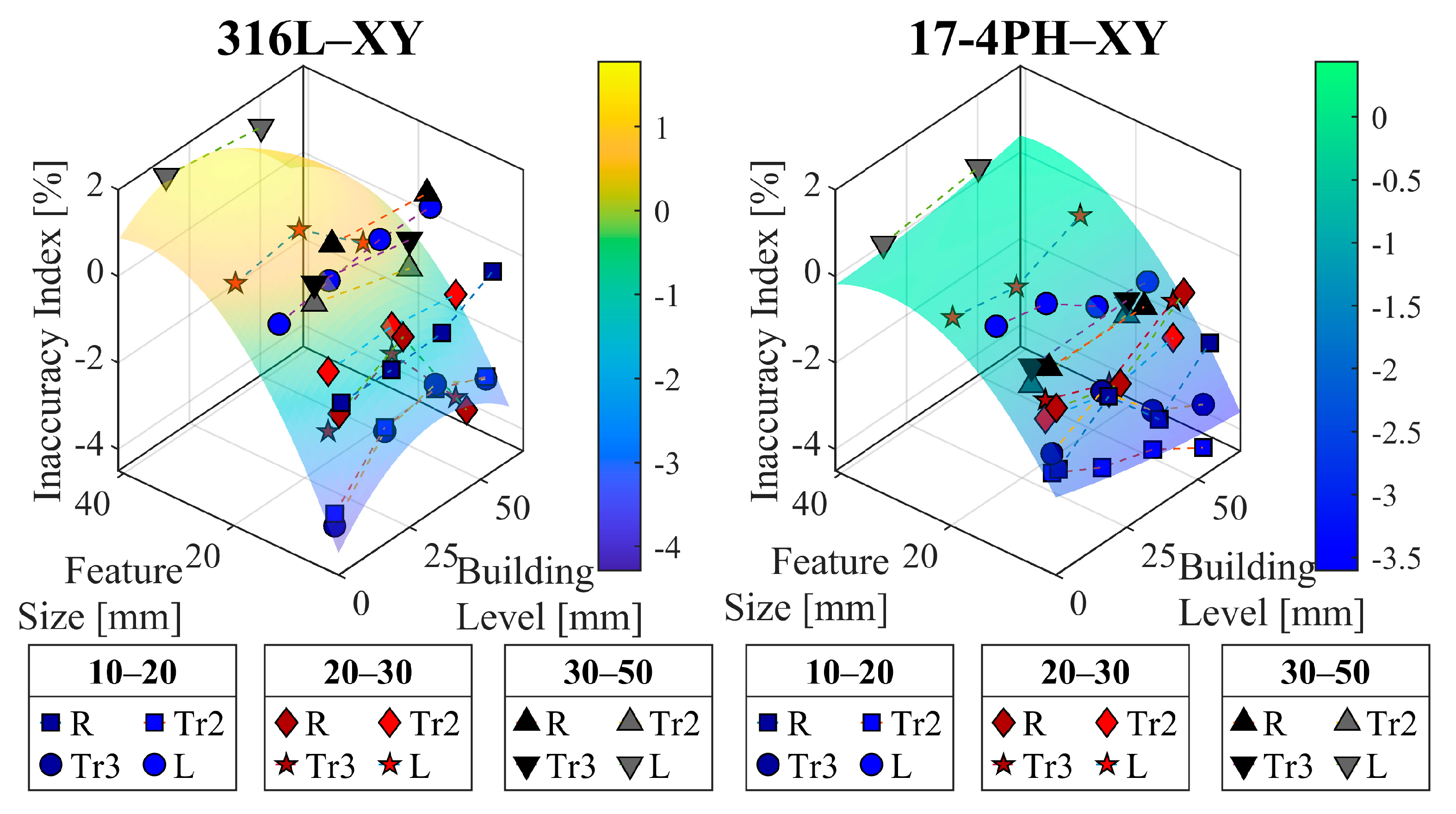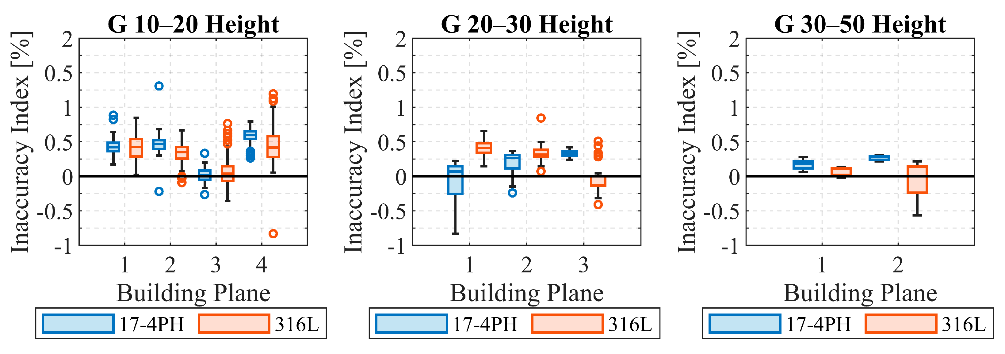 3.4. Accuracy and Spatial Repeatability—Sintered State