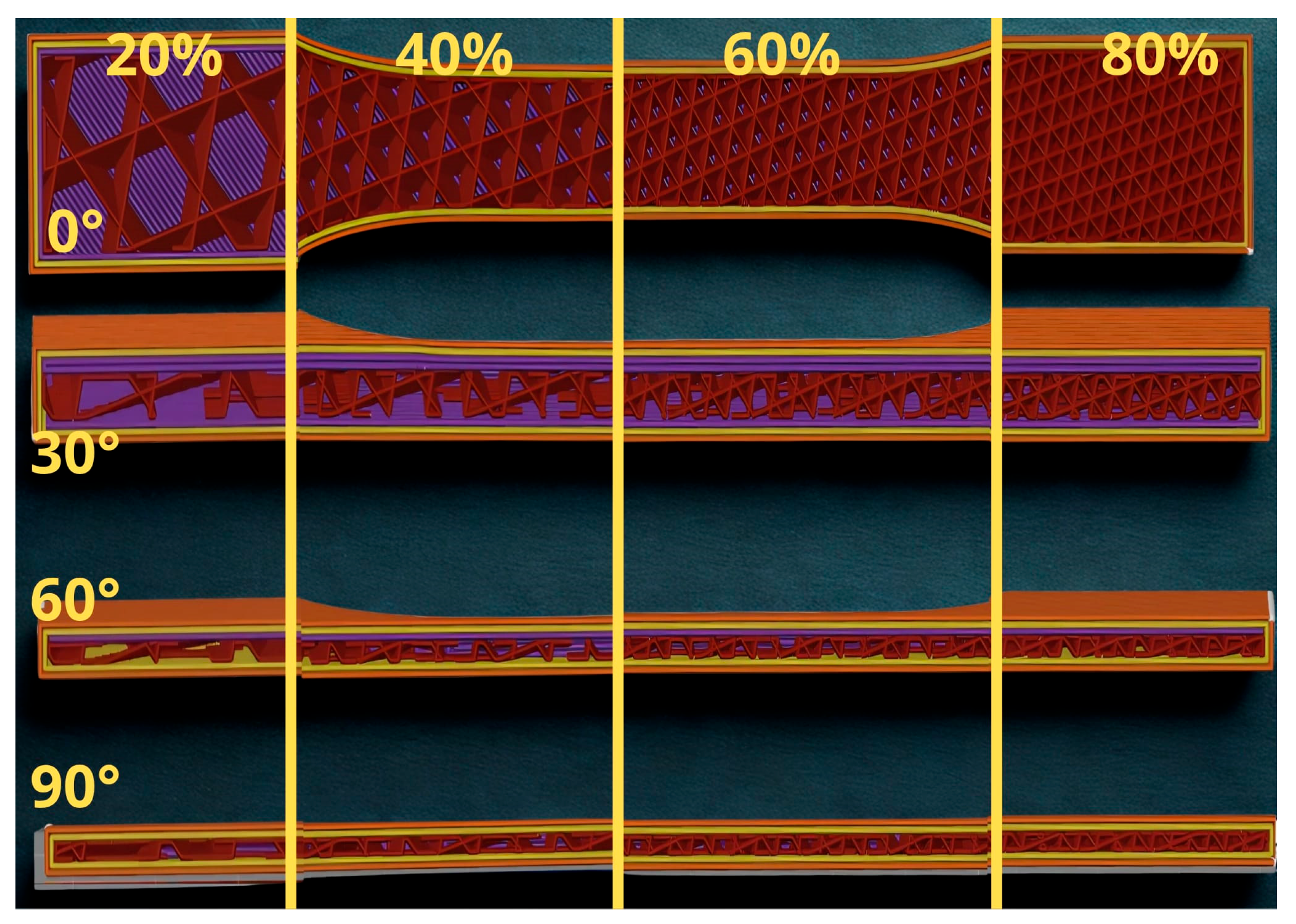 | Infill density | 20%, 40%, 60%, 80% | |