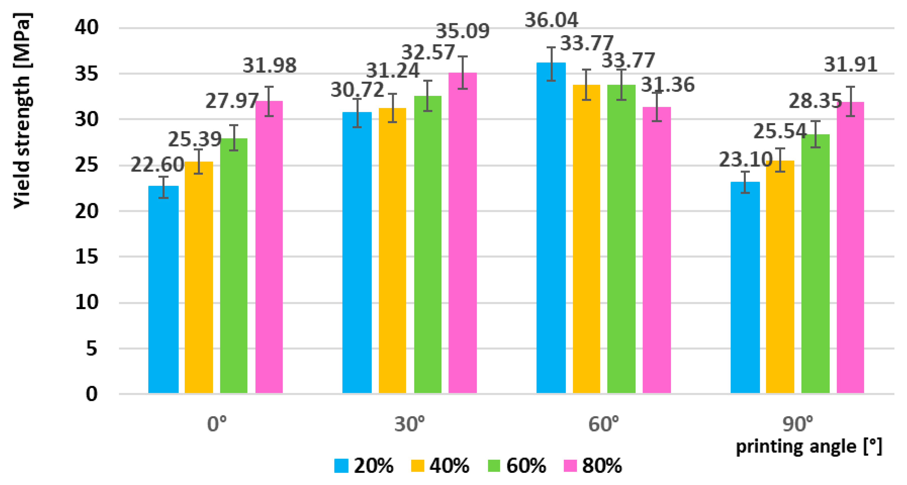 3.1.1. Yield Strength–As-Printed Samples