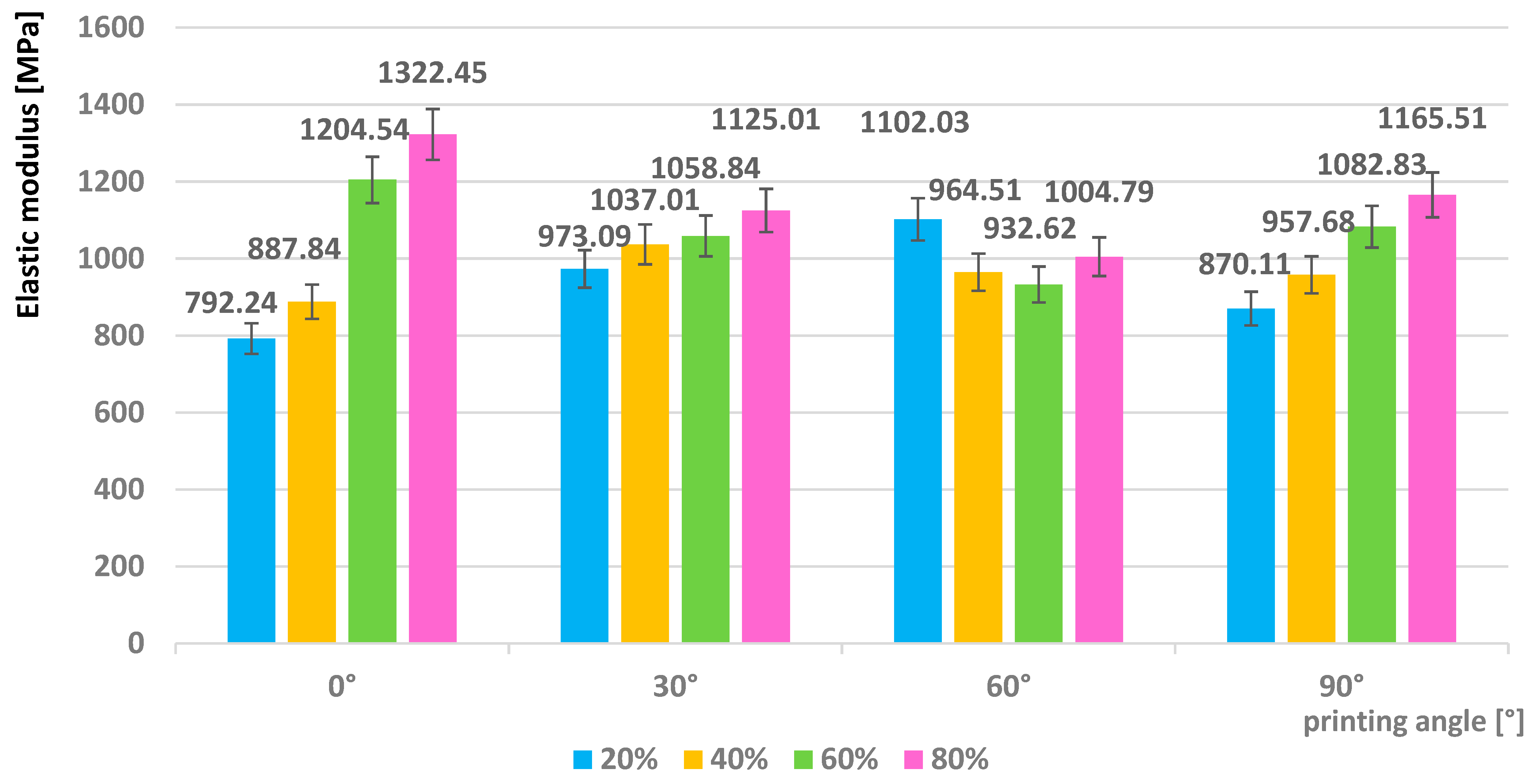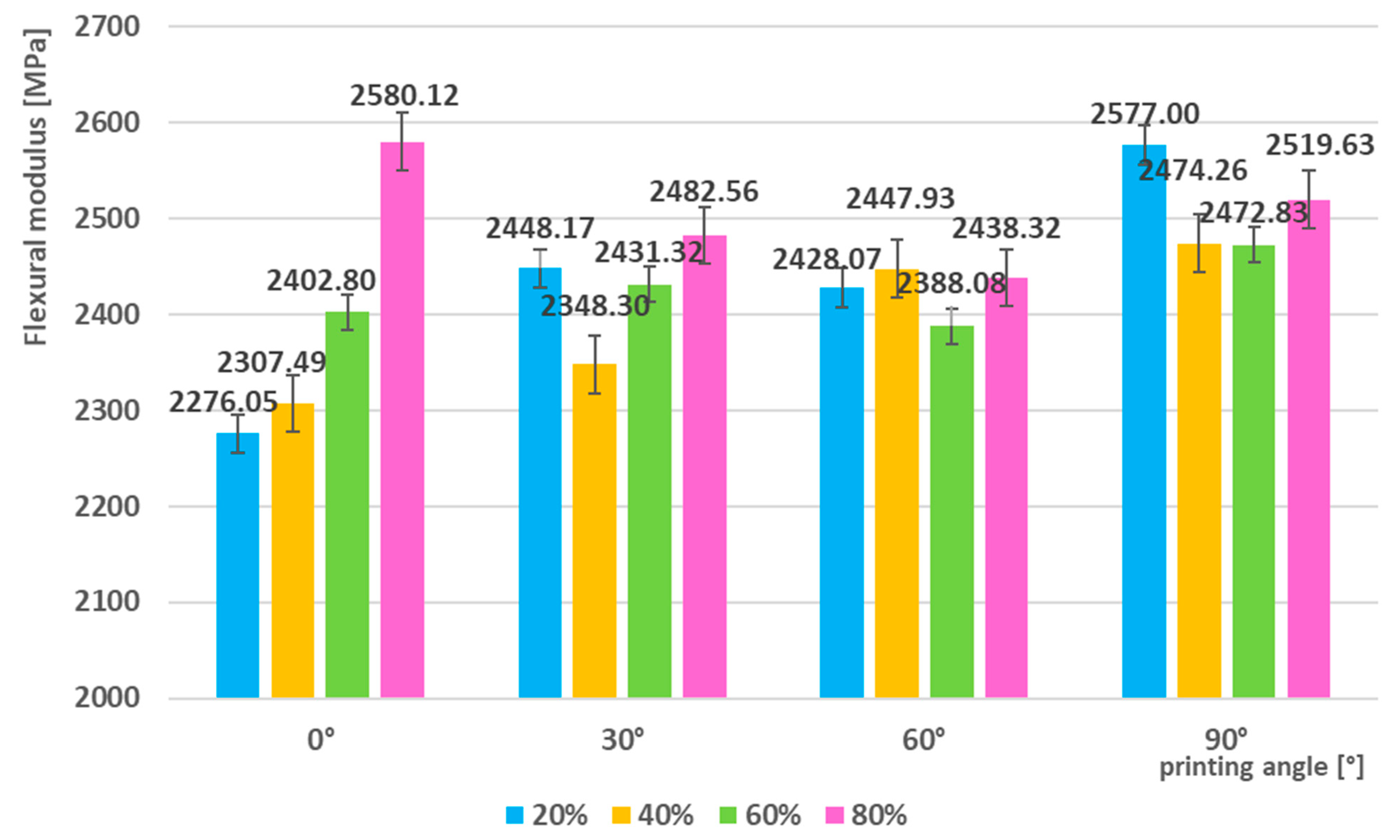 3.4.1. Flexural Modulus–As-Printed Samples