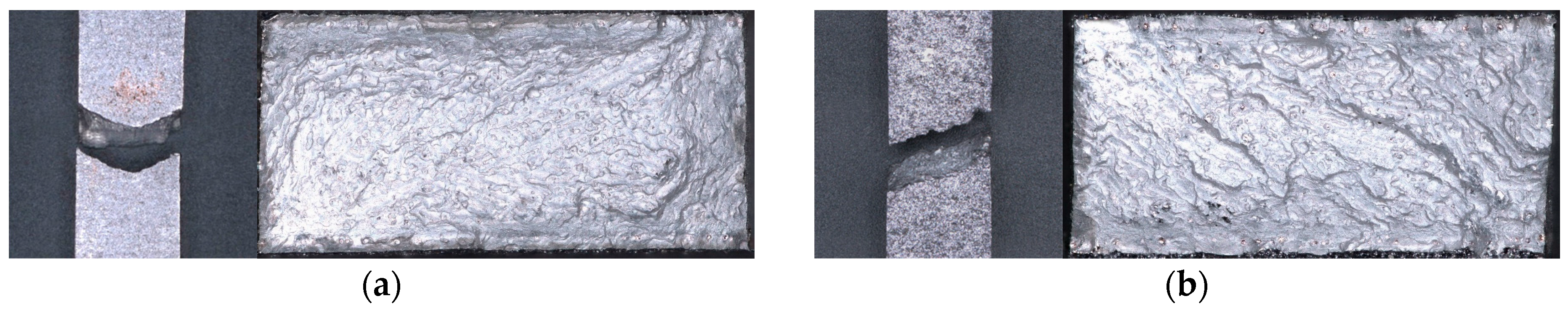 Figure 6a,b, all samples exhibited a ductile shear fracture [