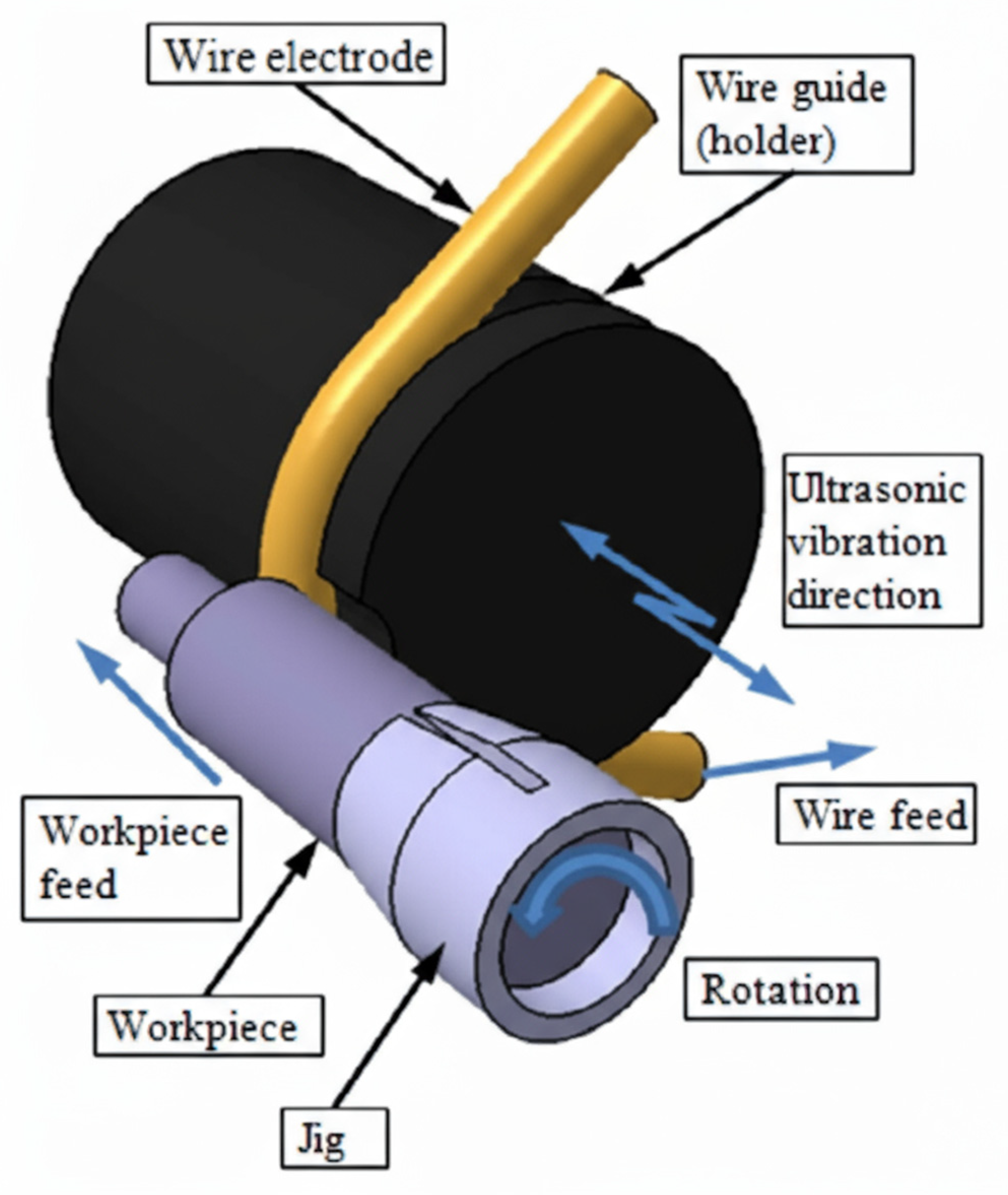59] demonstrate significant improvements in wire electrical discharge machining performance through ultrasonic wire vibration. In [