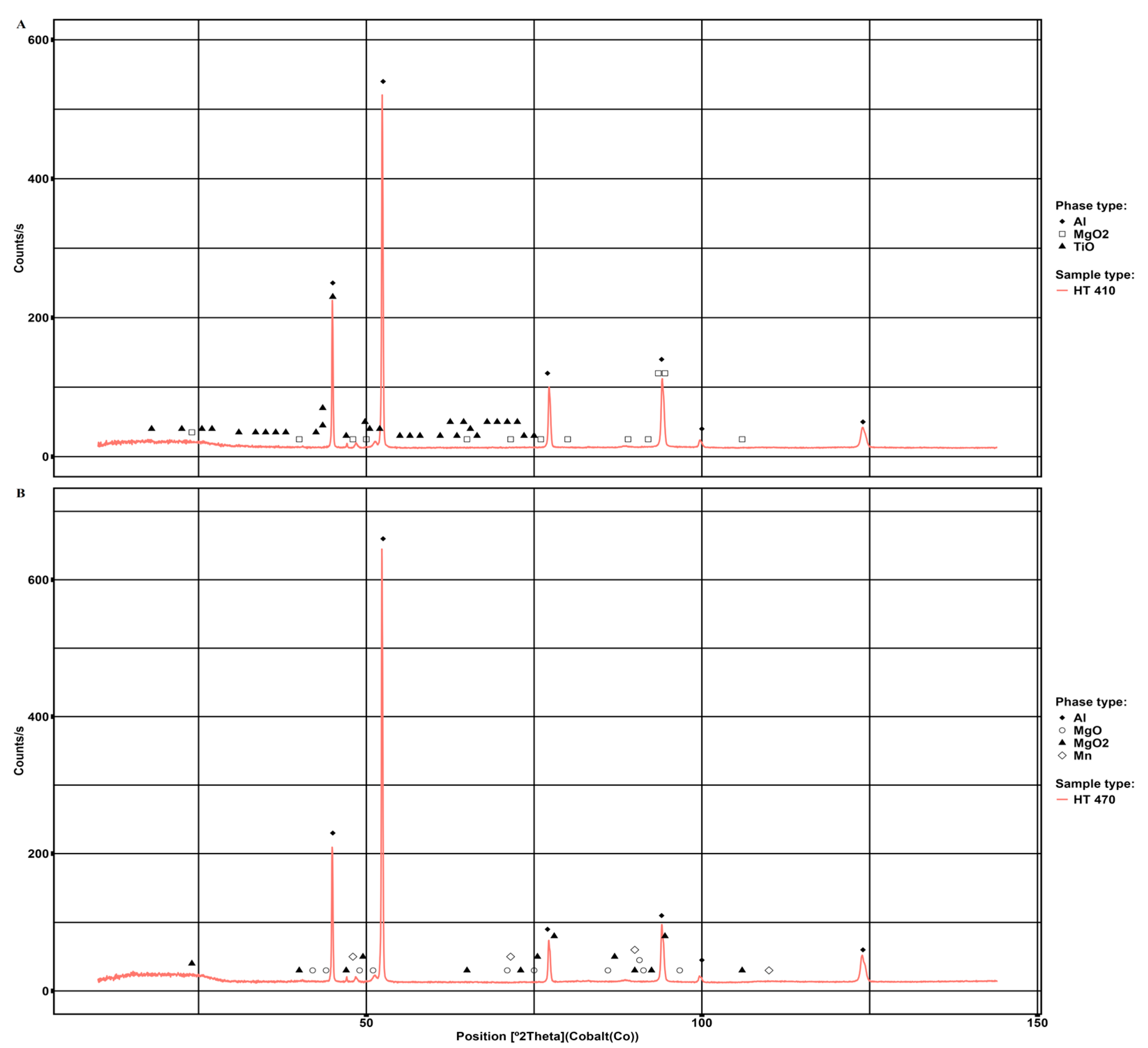 | AlSi10Mg for a temperature of 440 °C and a time of 1 h (<500 μm) [38] | 106.627 ± 2.314 | 167.986 ± 4.032 | --- |