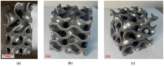 Fabricated AlSi10Mg samples: (a) hybrid gyroid-diamond. (b) Gyroid 1. (c) Gyroid 2.