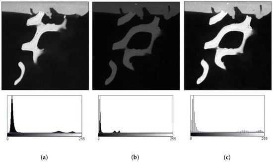 Due to the significant differences in the histogram shapes of some images in the stacks (See Figure 2a,b), histogram normalization was performed to achieve a uniform distribution. This process improved both the contrast and the comparability among the images (See Figure 2b,c).