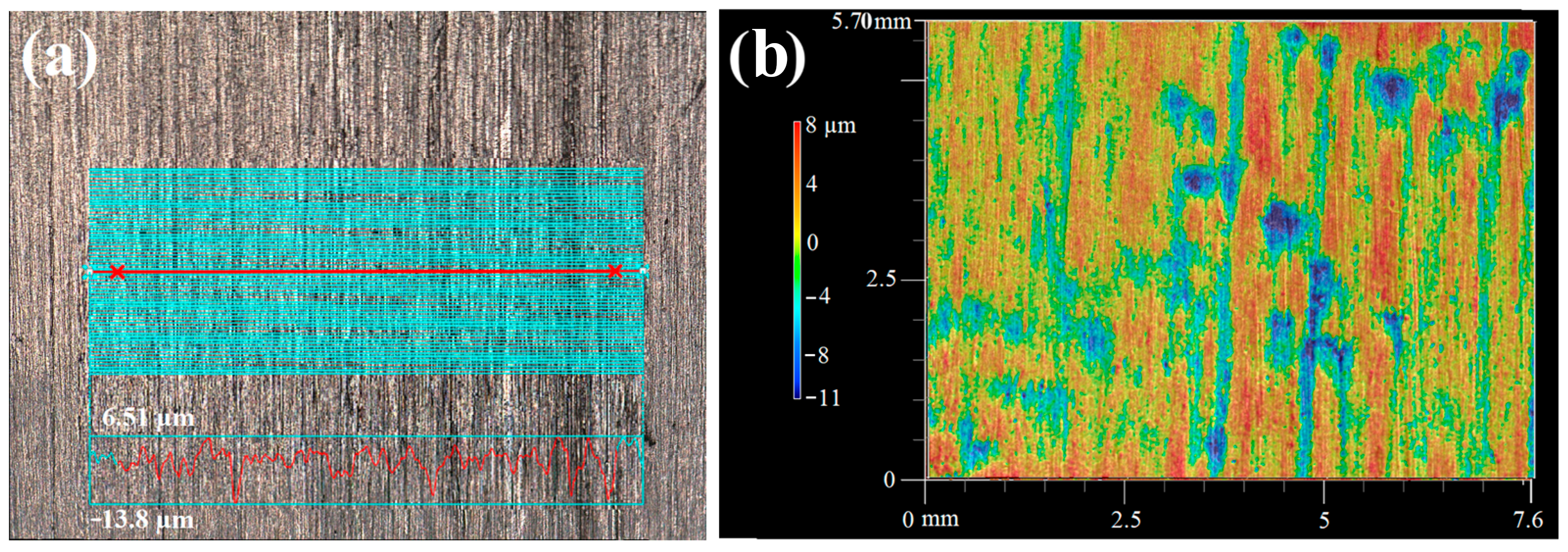 - Liu, X.; Zhang, H.; Tong, H.; Sui, Y.; Li, X.; Hou, J. Effect of Surface Roughness on the Corrosion Behavior of 304 Stainless Steel in Seawater. J. Mater. Eng. Perform. 2024, 34, 18287–18297. [Google Scholar] [CrossRef]