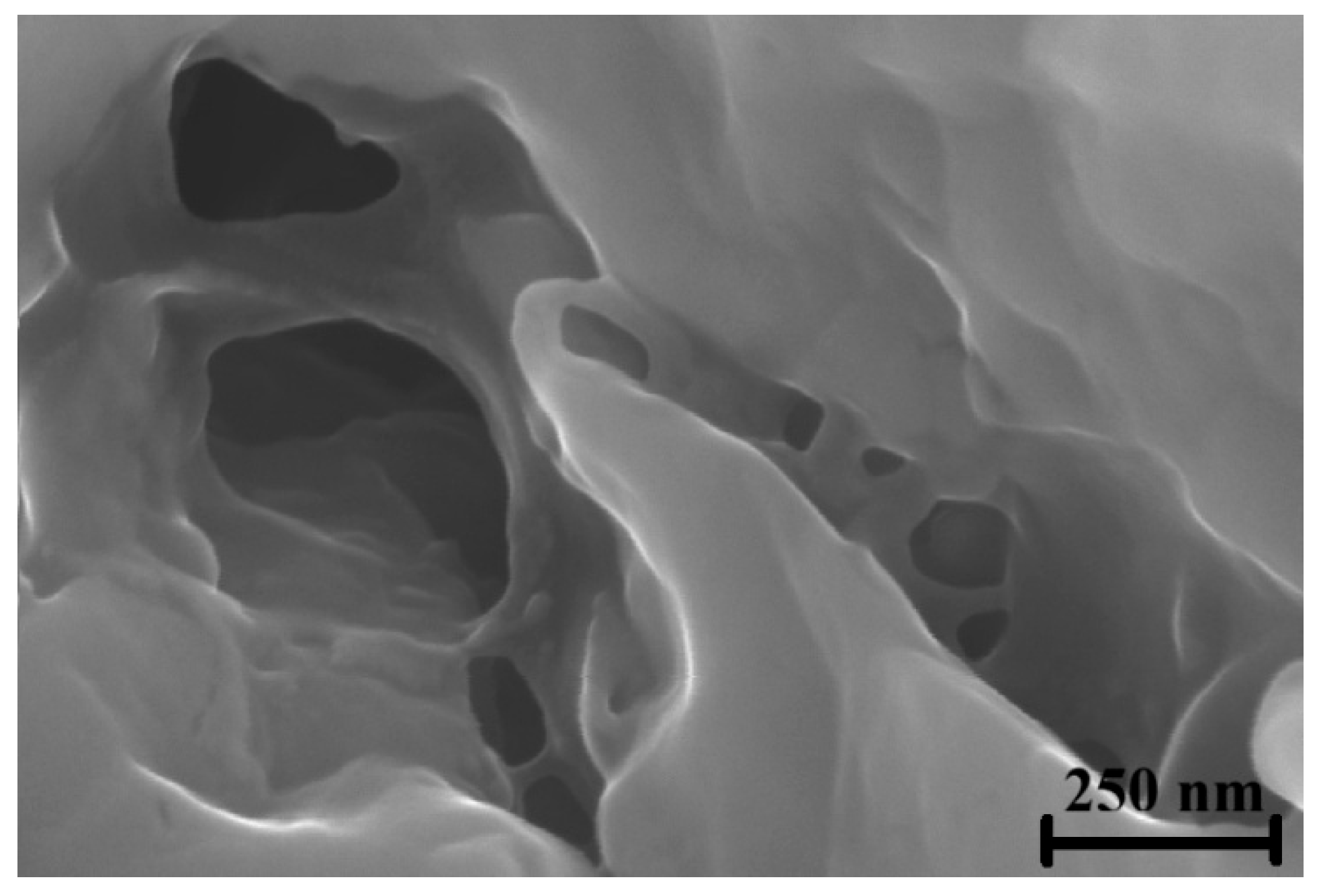 High-magnification SEM image of the porous oxide layer near the fusion line.