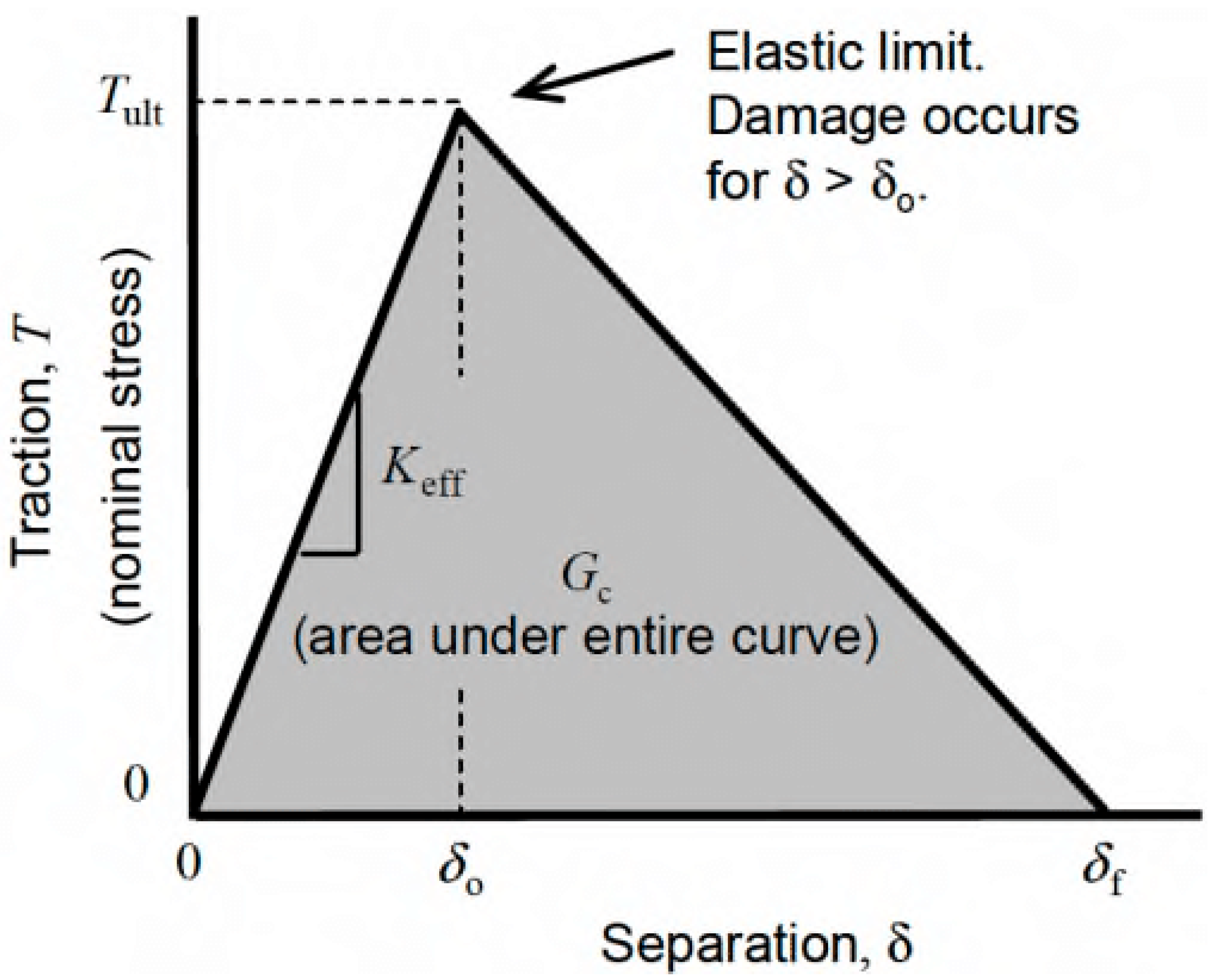 Figure 7. Bilinear traction–separation law diagram.