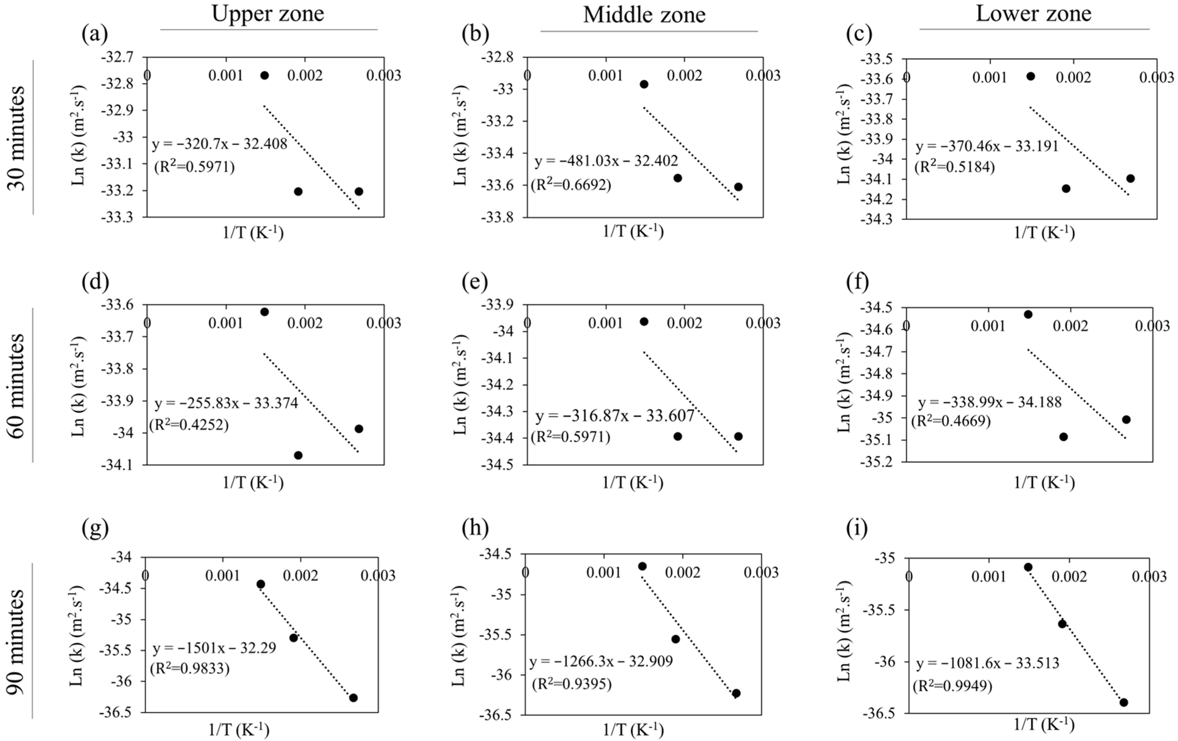 ZoneEquationQ (J/k.mol)K0 (m2/s)Arrhenius Equation