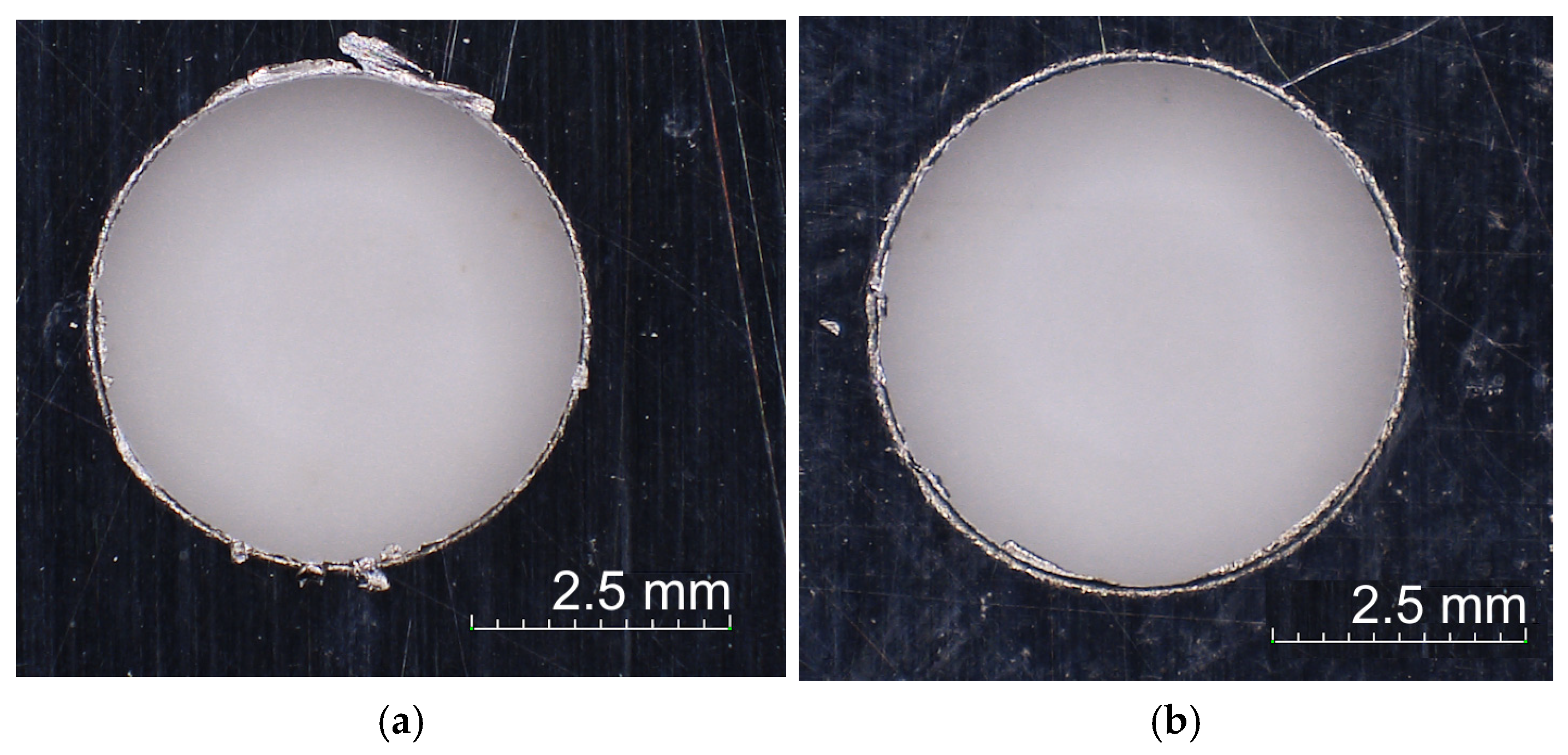 - Zai, P.; Tong, J.; Liu, Z.; Zhang, Z.; Song, C.; Zhao, B. Analytical Model of Exit Burr Height and Experimental Investigation on Ultrasonic-Assisted High-Speed Drilling Micro-Holes. J. Manuf. Process. 2021, 68, 807–817. [Google Scholar] [CrossRef]