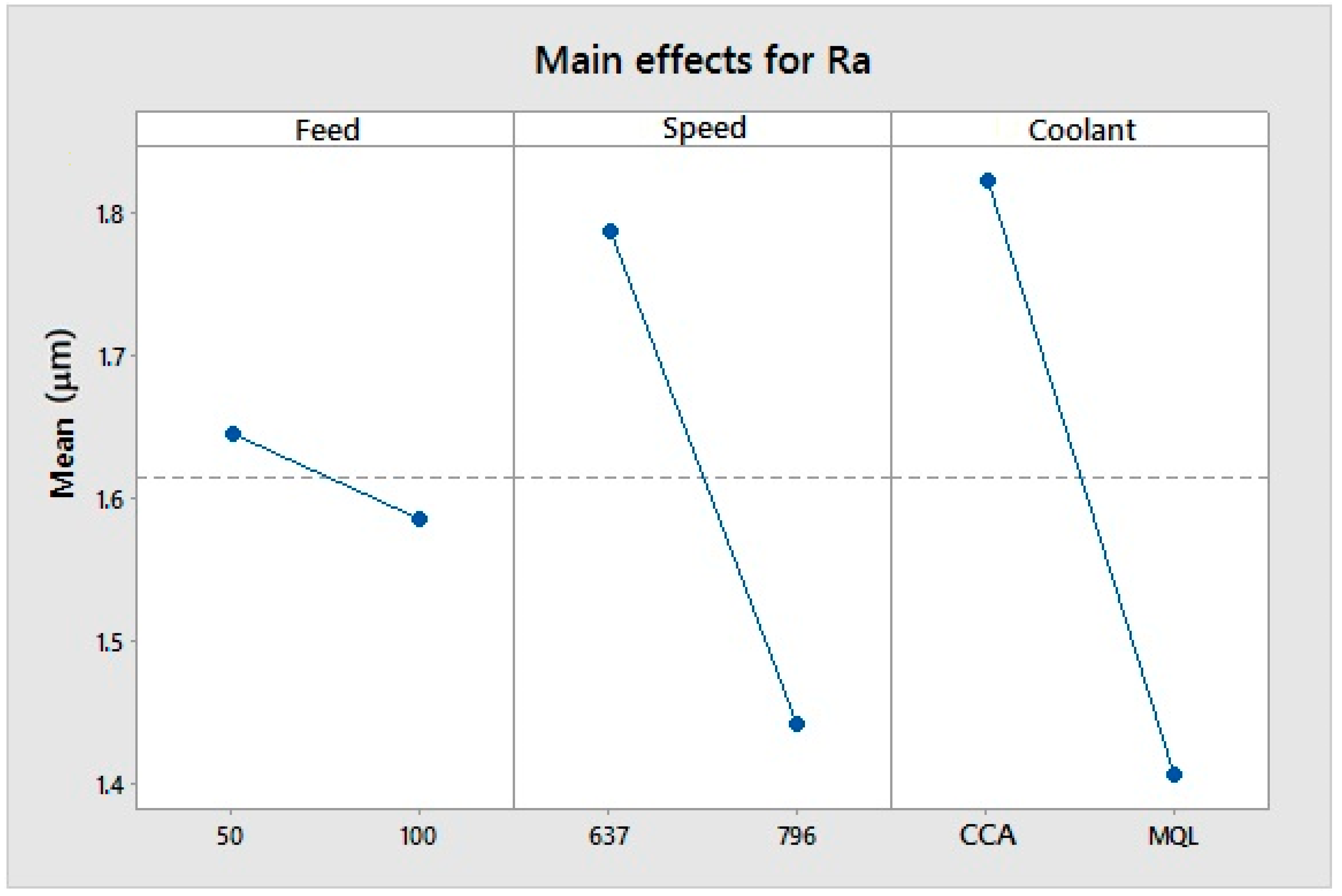 | Nº | Feed (mm/min) | Speed (rpm) | Coolant | Roughness | |