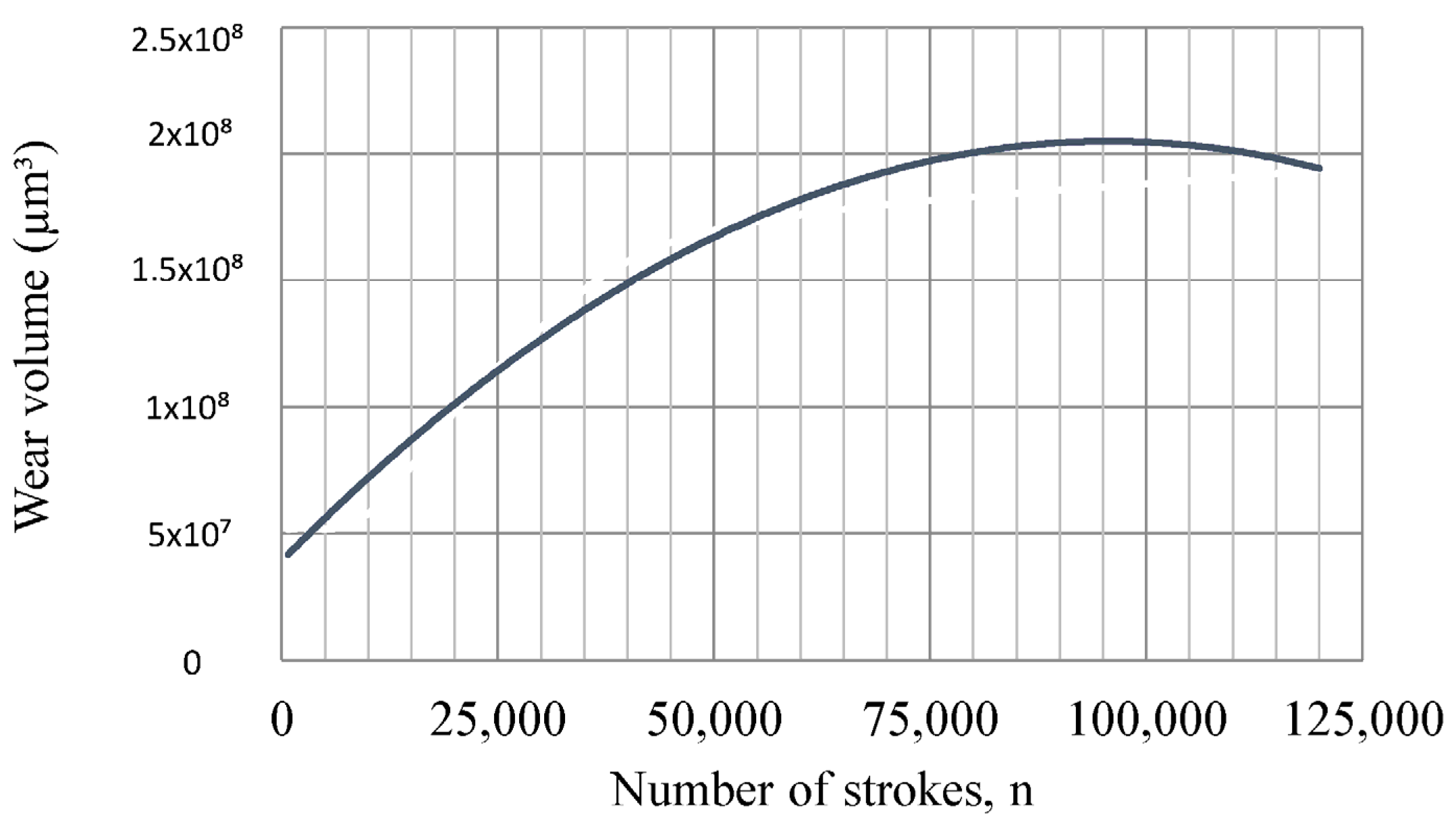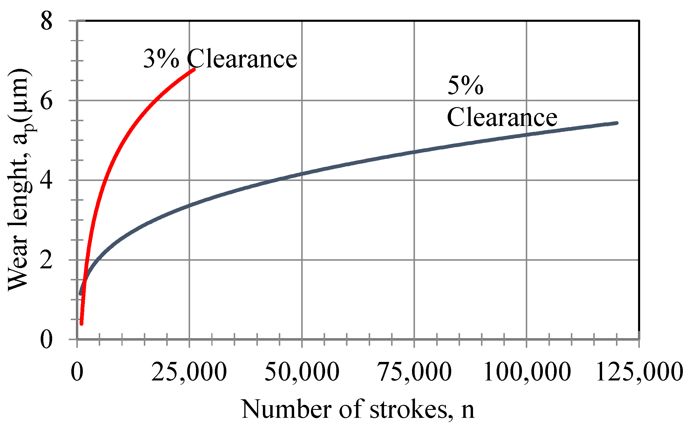 Figure 15. Axial wear length (bp) as a function of the number of strokes.