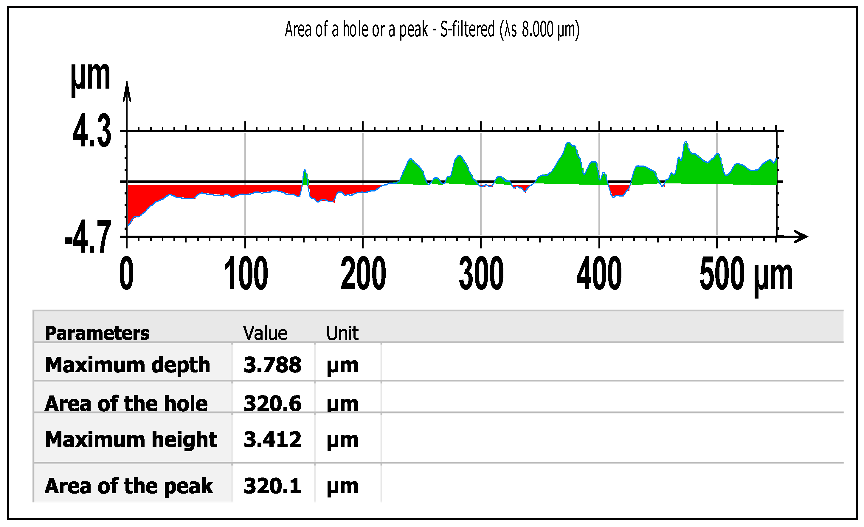 Figure 16. Section view showing the area of peaks and holes at the end of the punch side face in the 5%clearance condition at 26,000 strokes..(Surface roughness profile measured with a cut-off wavelength λs = 8 µm according to ISO 4287 [29]).