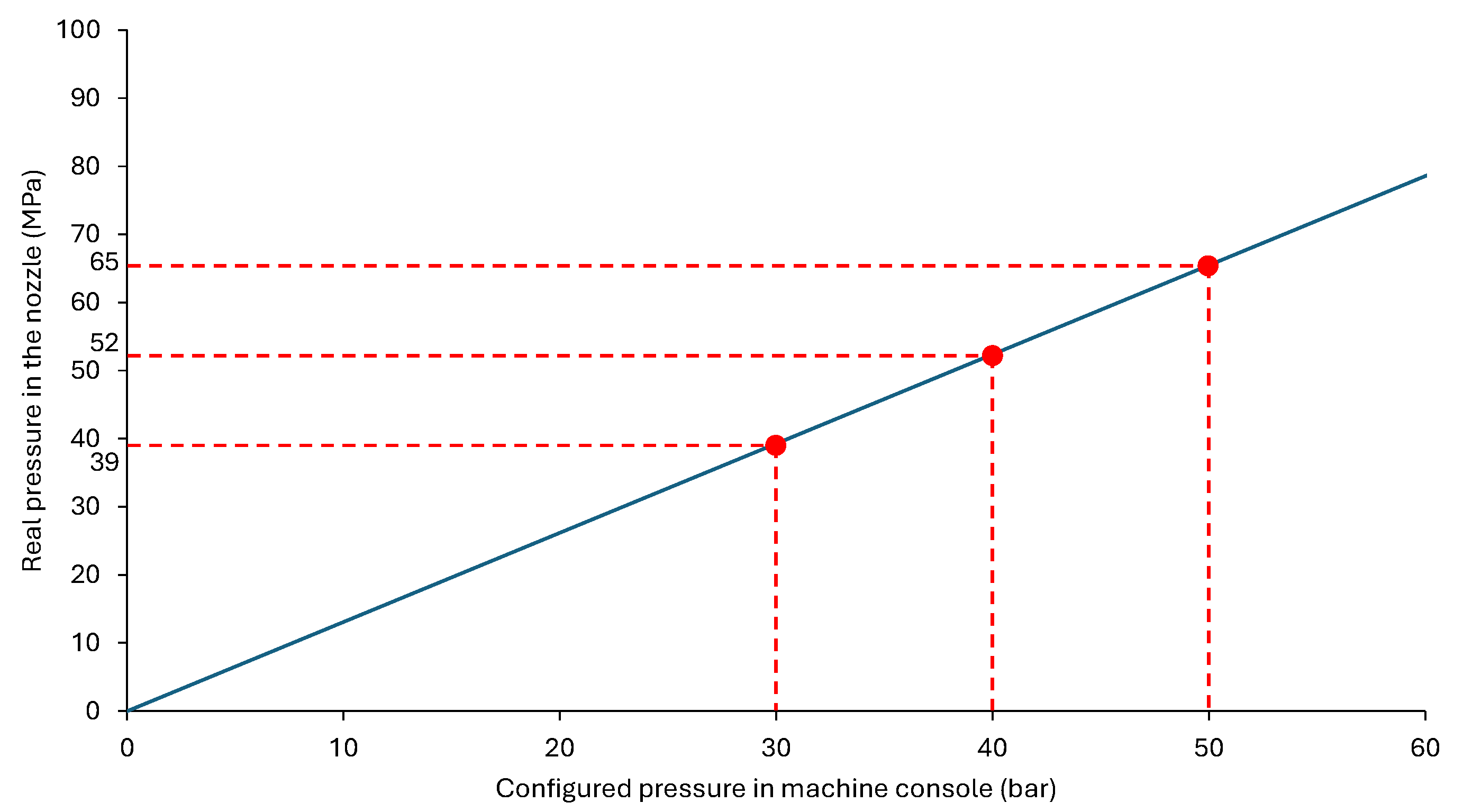 Pressure conversion factor for a Battenfeld TM 1000/525.