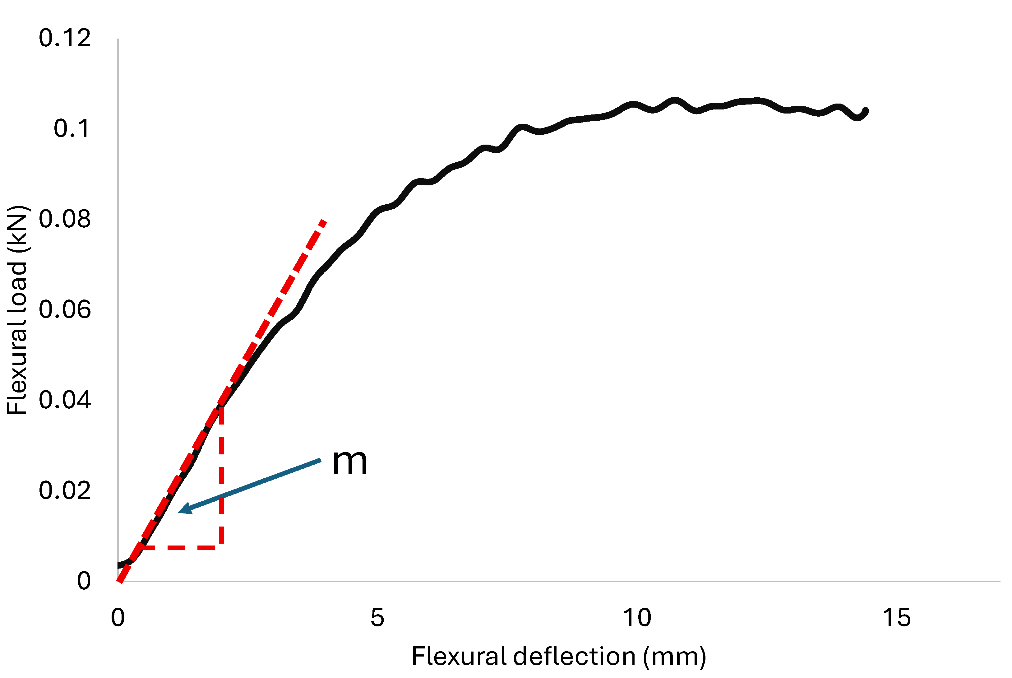 Slope of tangent to initial straight-line portion (m) identified in load–deflection curve.