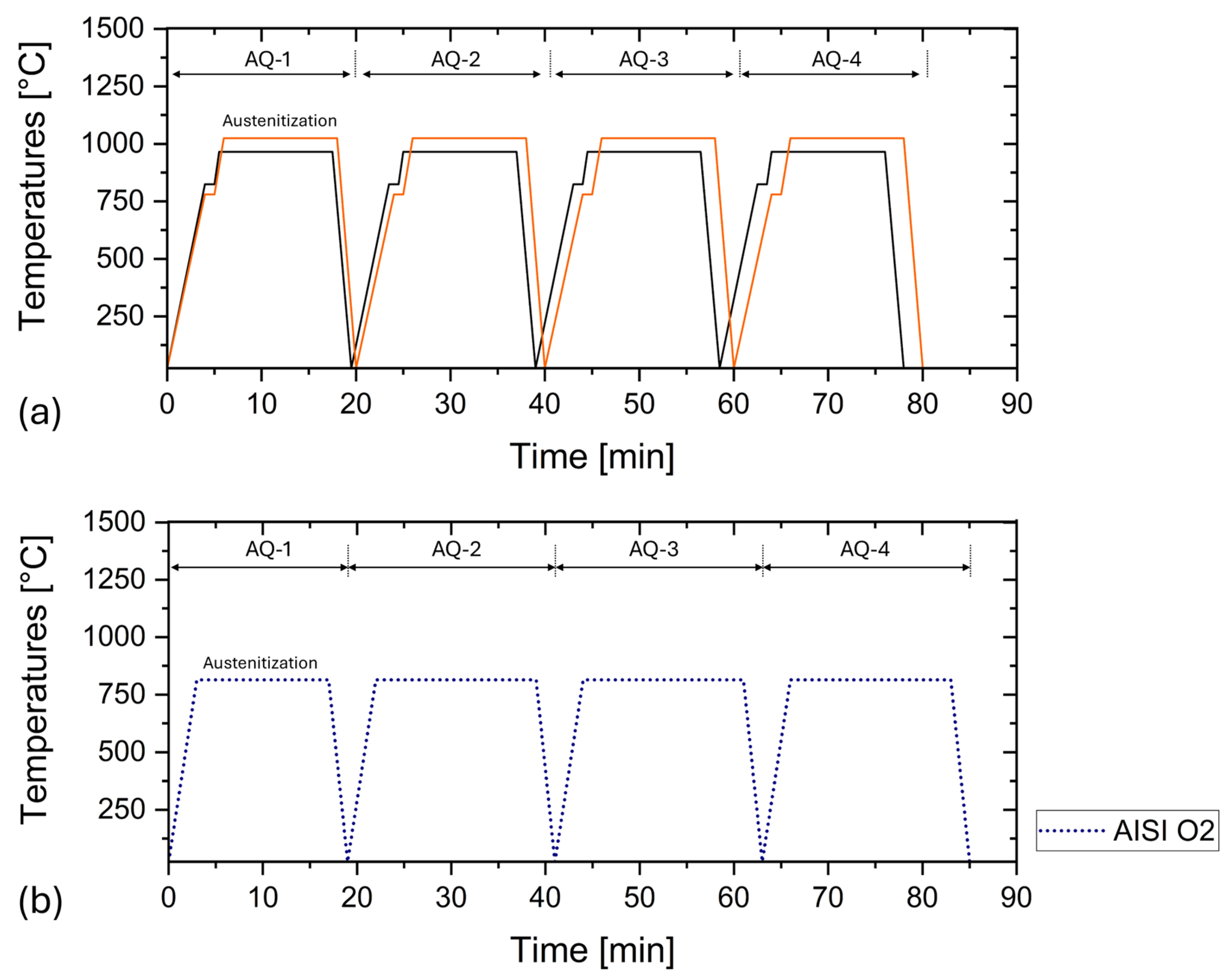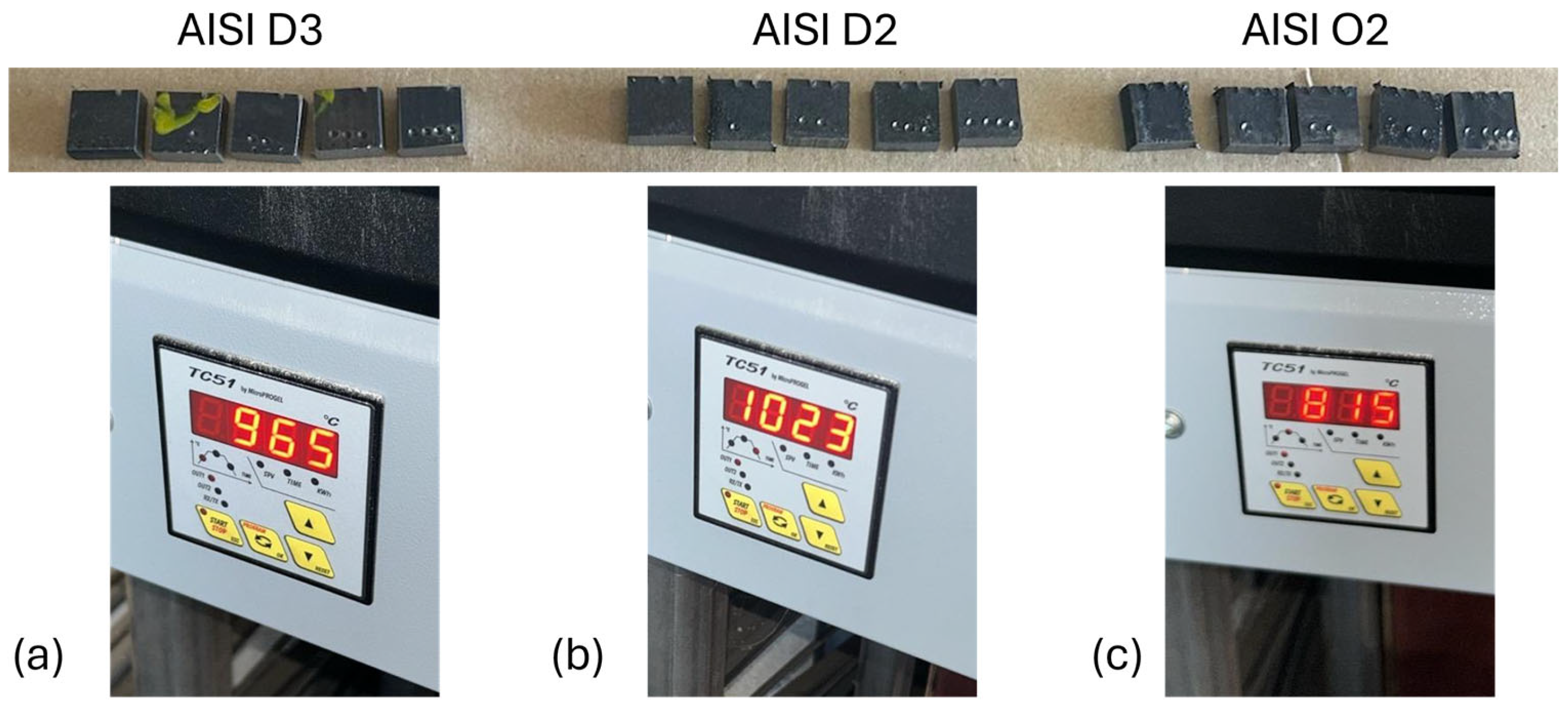 - Çivici, M.; Özer, M.; Altuntaş, G.; Yilmaz, T.; Shelar, A.R.; Altuntaş, O.; Özer, A. Advanced Heat Treatment Strategies for Optimizing Microstructure and Mechanical Integrity of AISI O2 Tool Steel. Ironmak. Steelmak. Process. Prod. Appl. 2025, 52, 1232–1242. [Google Scholar] [CrossRef]