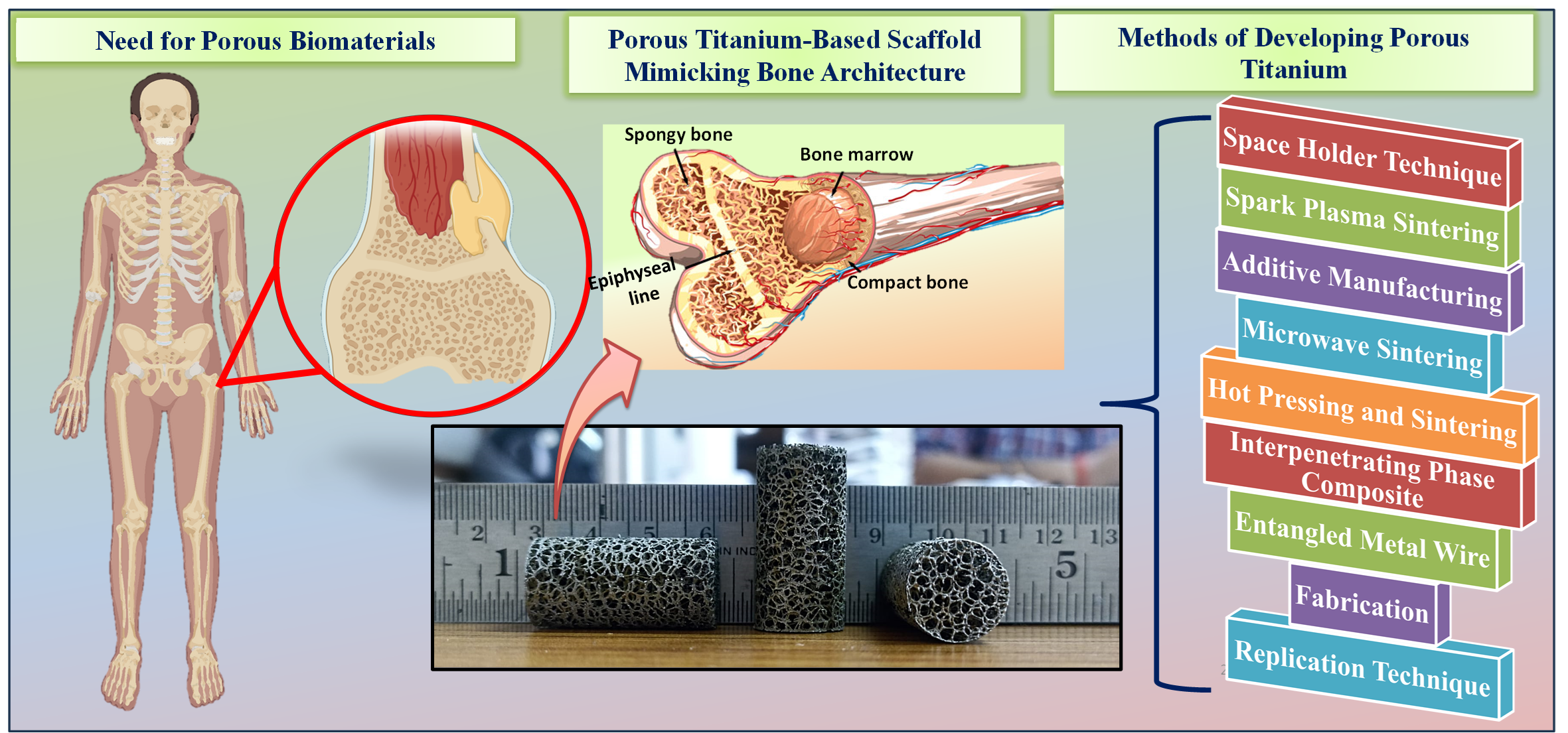 - Investigations of biocompatible joining strategies should be carried out for integrating porous Ti into various biomaterials or metallic implant structures.
