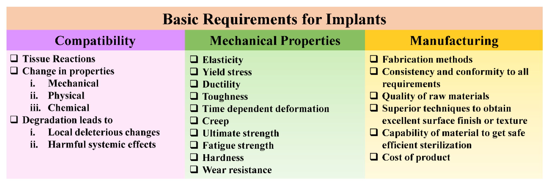 2. Material Characteristics Critical to Implant Functionality