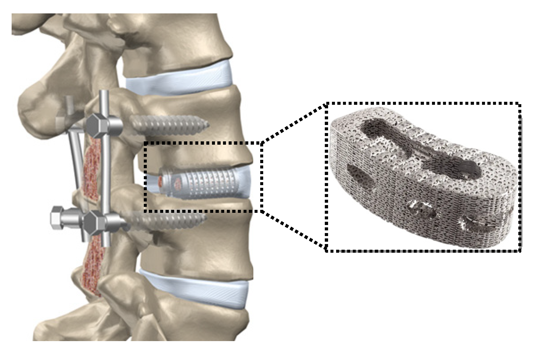 - ATEC’s IdentiTiTM-PC ATEC’s IdentiTi Posterior Curved Porous Ti Interbody Implants. Available online: https://www.londonspine.com/instrumented-lumbar-fusion-for-degenerative-spondylolisthesis/ (accessed on 30 November 2025).