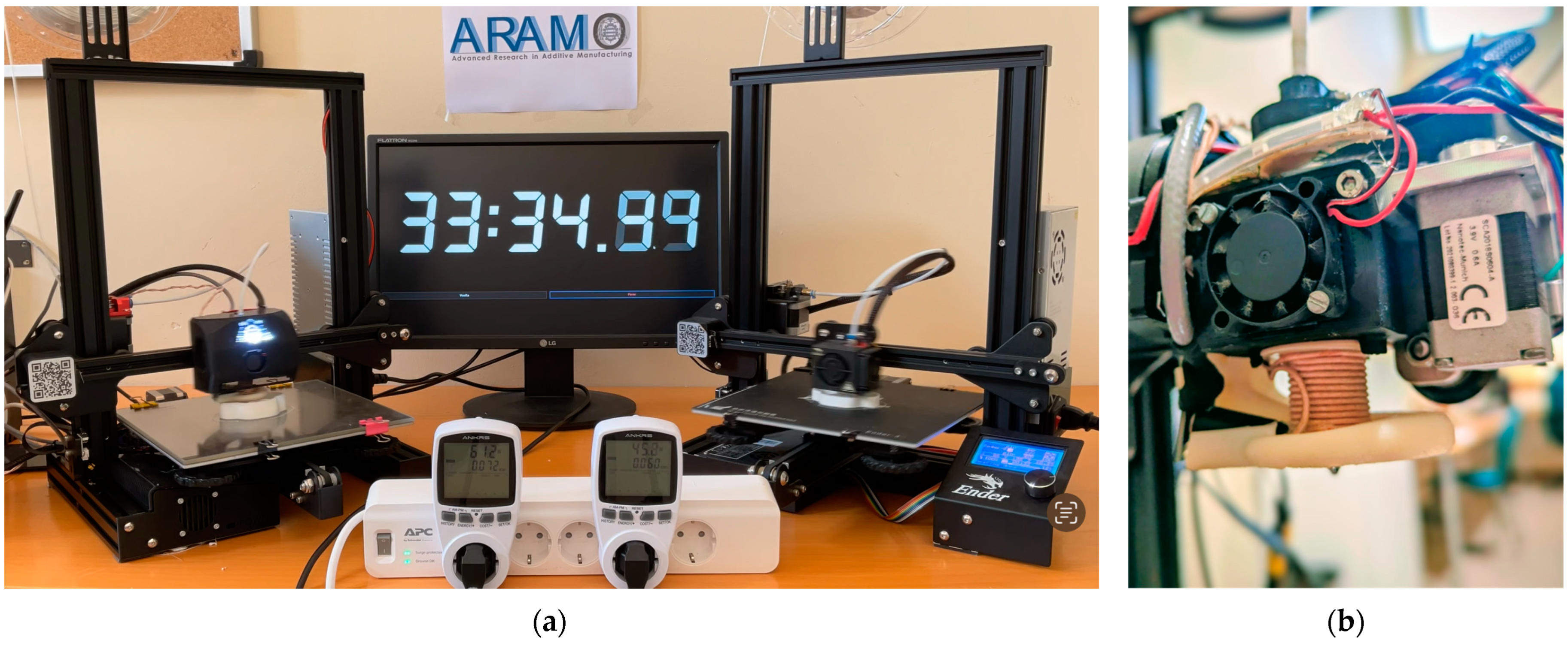 - Vidakis, N.; Kechagias, J.D.; Petousis, M.; Vakouftsi, F.; Mountakis, N. The Effects of FFF 3D Printing Parameters on Energy Consumption. Mater. Manuf. Process. 2023, 38, 915–932. [Google Scholar] [CrossRef]