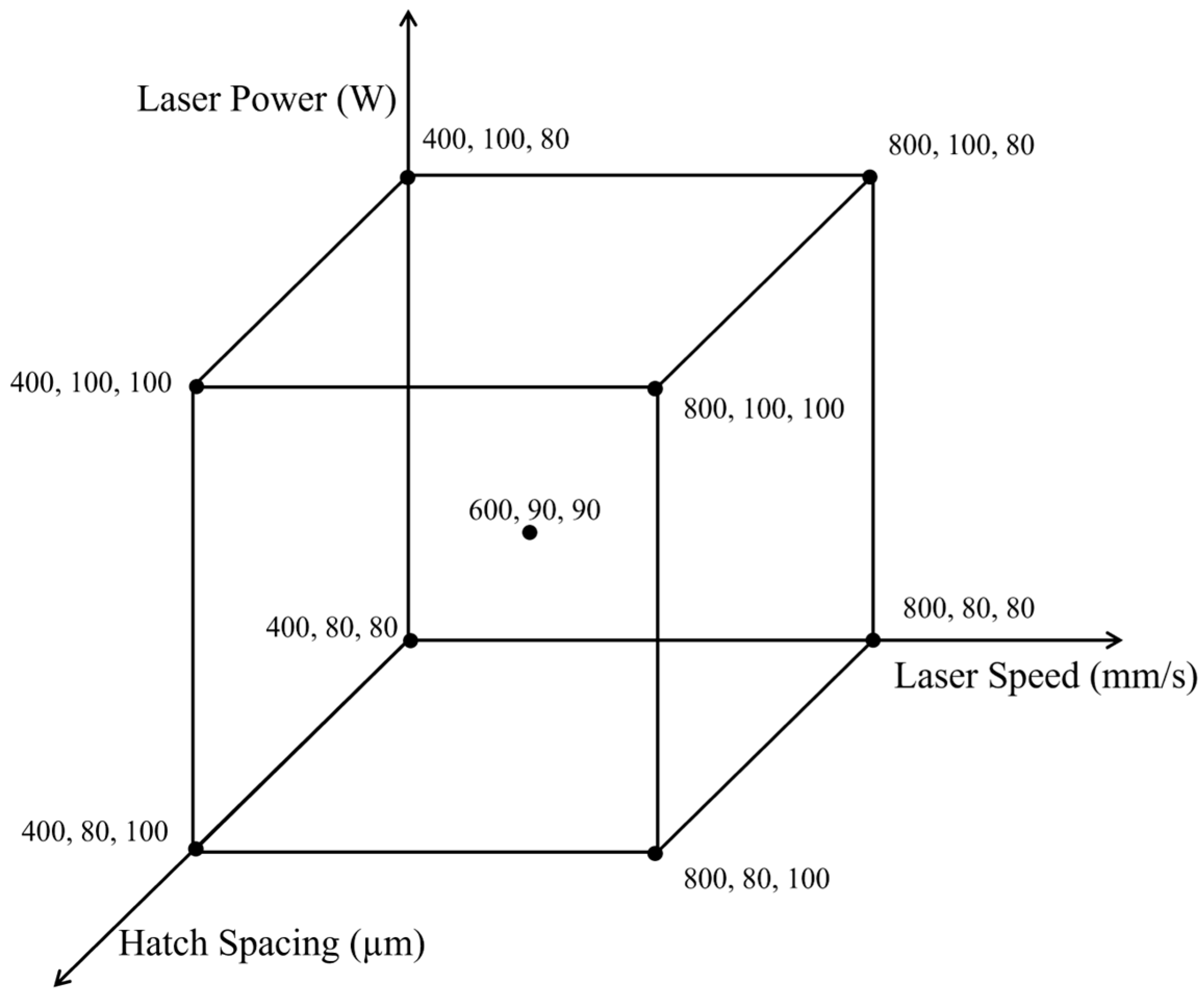 | S.N. | Laser Speed (mm/s) | Laser Power (W) | Hatch Spacing (µm) | Layer Thickness (µm) | Energy Density (J/mm3) | Red | Green | Blue |