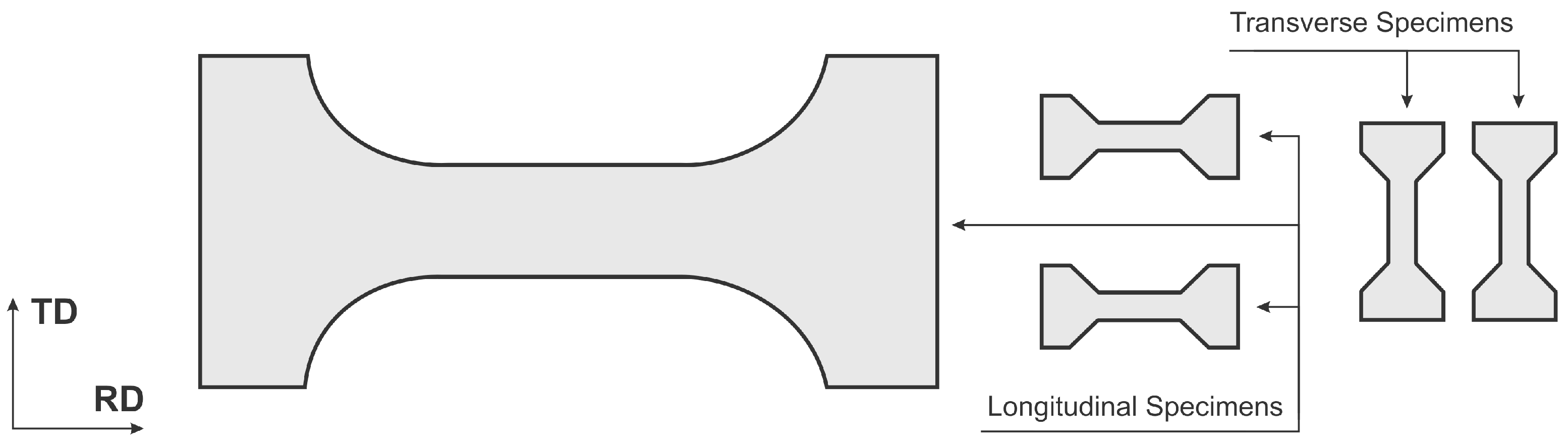 | Specimen Condition | Cutting Direction | YS, MPa | TS, MPa | RE, % |