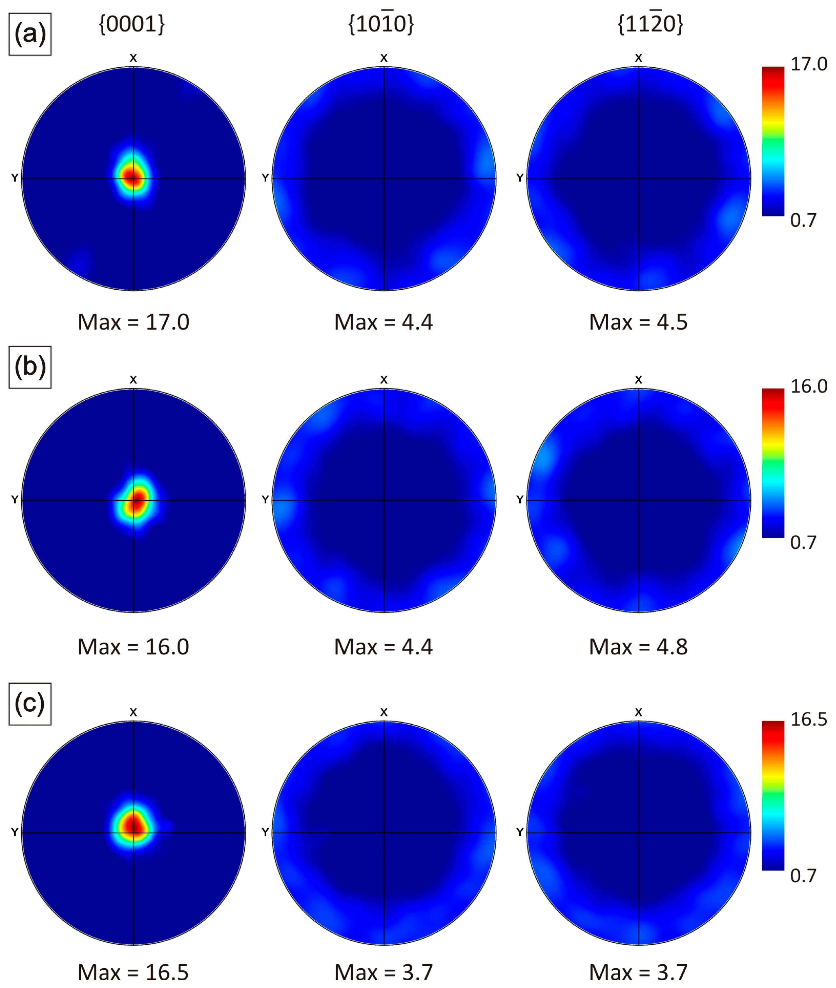 - Roller straightening in 1 and 3 passes maintains a strong basal texture and does not affect the pole density.