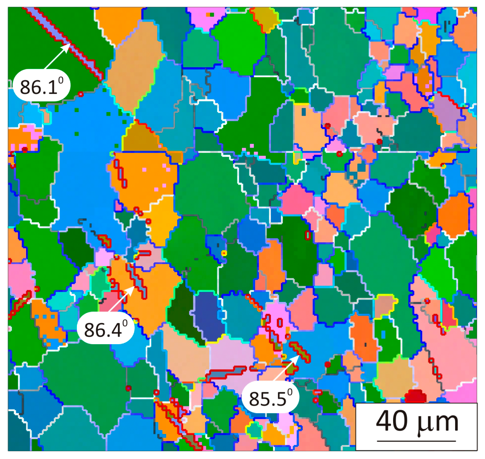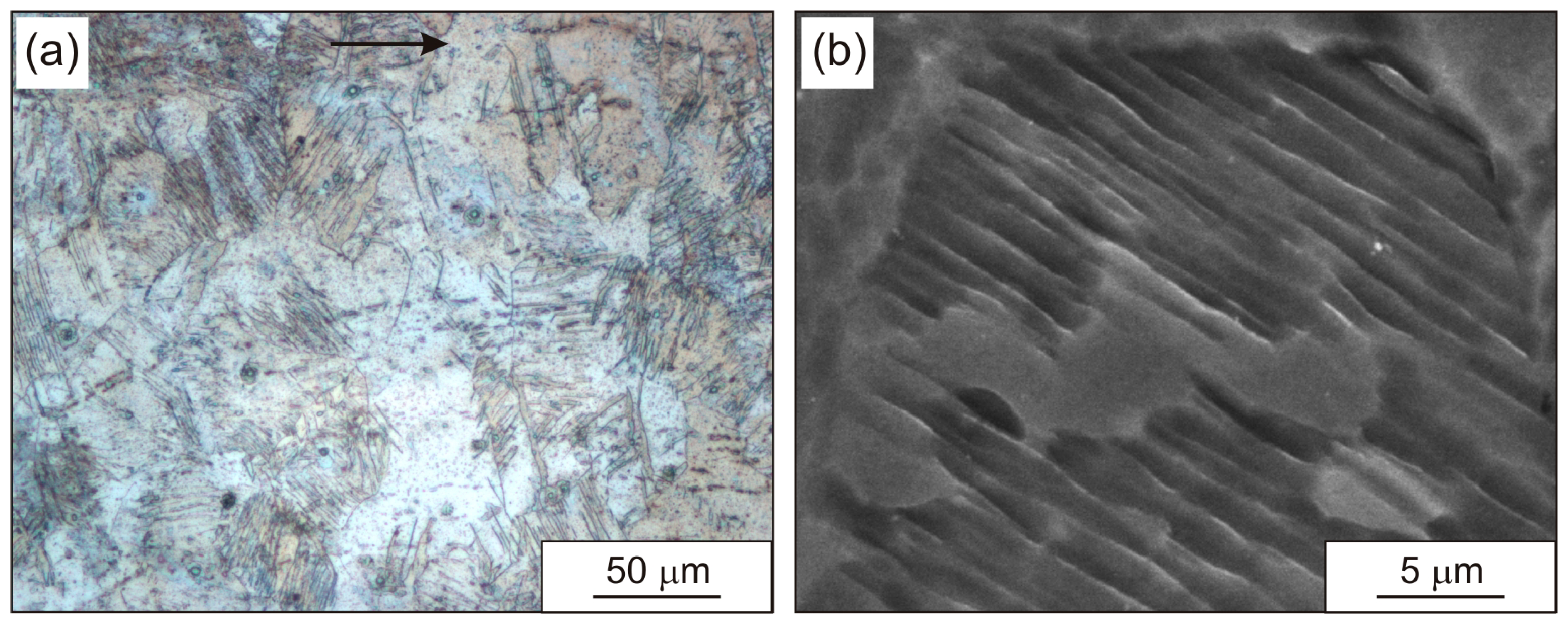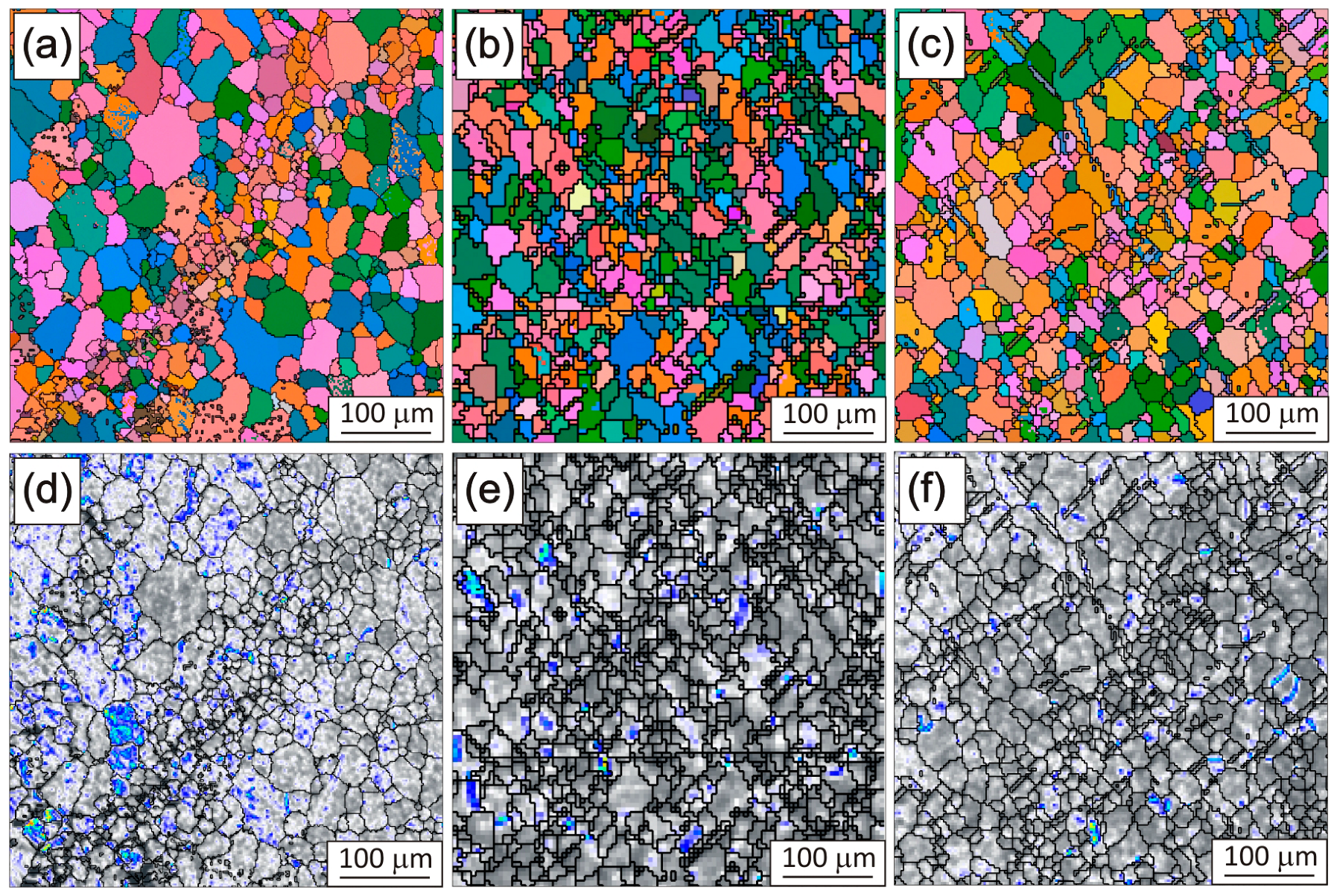 - Rogachev, S.O.; Shelest, A.E.; Andreev, V.A.; Yusupov, V.S.; Tabachkova, N.Y.; Ten, D.V.; Isaenkova, M.G.; Krymskaya, O.A. Effect of preliminary heat treatment on the formation of structure and mechanical properties of brass during alternating bending. Russ. Metall. 2023, 2023, 1494–1500. [Google Scholar] [CrossRef]