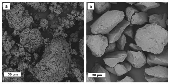 Powder morphologies: (a) ECTFE and (b) Al2O3.