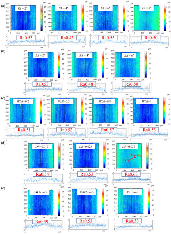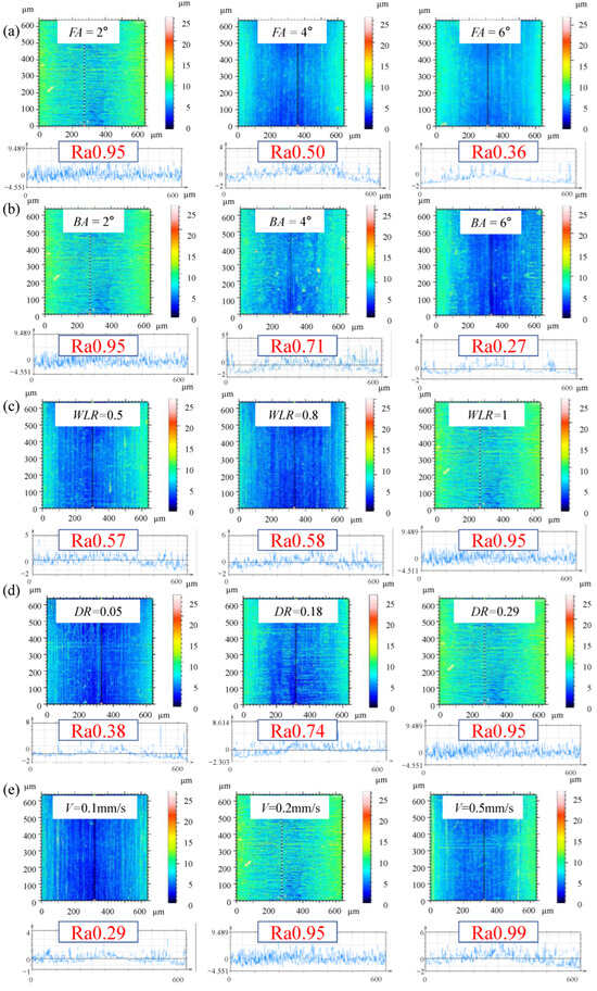 Single-factor experiments of the significant parameters, i.e., FA, BA, WLR, DR and V were performed to investigate the fatigue enhancement mechanism of the DMCE process, and the experimental scheme is listed in Table 9.