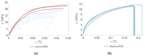 | Adherend | Stress at 0.2% [MPa] | Peak Stress [MPa] | Peak Strain [%] | Young’s Modulus [MPa] |