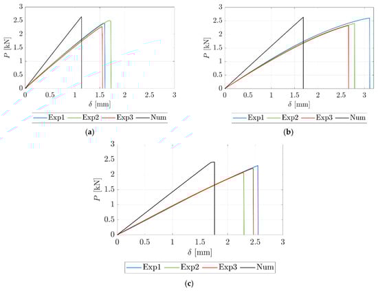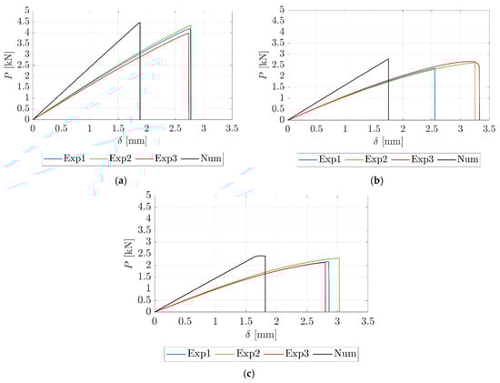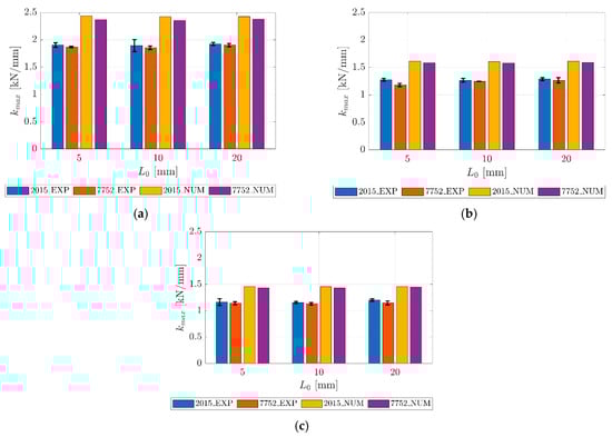 - In terms of the CZM stiffness numerical model results, it can be observed (in Figure 13) that the values are overestimated for all investigated scenarios but faithfully predict the trend of the stiffness. Here, the PETG samples have the highest value, followed by the ABS and PLA samples. The overestimated values are 18–21% for PETG, 20–26% for ABS, and 20–22% for PLA. Also, similar to the experimental results, within each group, the joint size and adhesive seem to be irrelevant, whereas the adherend is the biggest contributor to the stiffness value.