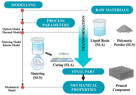 SLA is an additive manufacturing technique that enables the flexible creation of rapid prototypes [105]. This process creates an object by layering photosensitive polymers and subjecting them to UV light. The shrinkage and consequent distortion of the photosensitive materials change their dimensions, resulting in reduced precision in printed goods. The majority of the materials utilized in SLA are either traditional epoxy, acrylate resins, or thermoplastic elastomers [106]. The roughness of the surface can change when exposed to UV light. In SLA, the effect of process parameters on part quality (surface integrity and dimensional accuracy) has already been investigated [107]. The dimensional accuracy of 3D SLA prints is influenced by a number of parameters, such as component orientation, printing technology, post-processing techniques, and support material utilization as listed in Table 2.