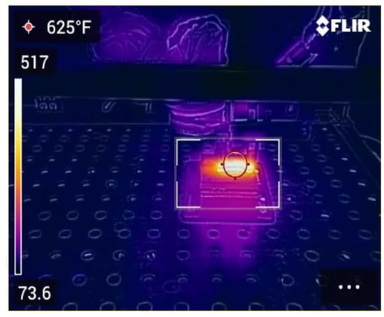 The thermal camera video feed, as shown in Figure 5, provided real-time temperature monitoring during the W-DED process. This implementation enabled continuous observation of interlayer temperature as the foundation for the dynamic dwell time control system.