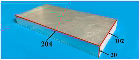 The workblank was a rectangular cold-extruded aluminum alloy sheet with a size of 204 mm × 102 mm × 20 mm, as shown in Figure 1. The material type is Al6061-T6 that is mainly composed of aluminum, magnesium, and other elements, with low density, high specific strength, and corrosion resistance, among other advantages. This material is widely used to manufacture aviation thin-walled parts such as aircraft frames, beams and wall panels. Its chemical composition and main mechanical properties are listed in Table 1 and Table 2 [22].