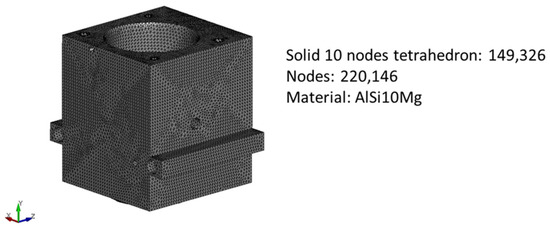 The material is an aluminum alloy used for AM (i.e., AlSi10Mg); hence, the material properties are shown in Table 2. The assumed material properties are taken from the literature, so there may be some differences with the actual physical values. Such differences are not deemed important, as the main objective of the thermal analysis is to compare the original refrigeration block design and the new one performed with the topology optimization to quantify the heat flows and temperature distribution in order to evaluate the improvements.