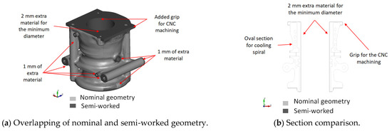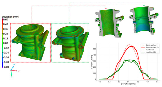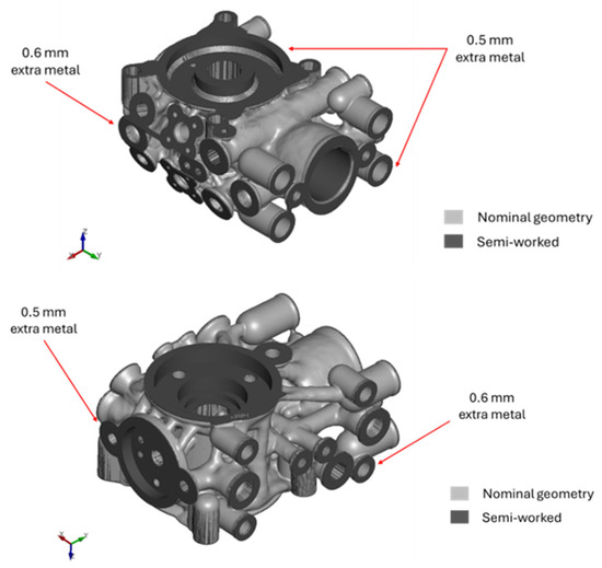 Figure 8 shows the nominal and semi-worked geometry obtained after the Boolean operations on the refrigeration block and describes the differences between the semi-worked parts and the nominal parts.