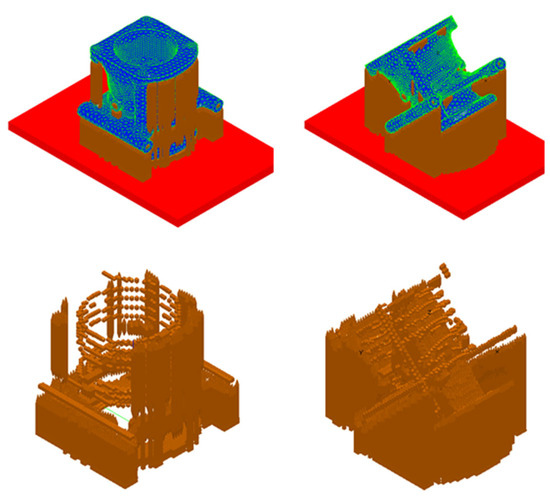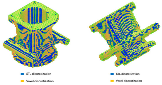 Figure 13 shows the voxel mesh generated by AMTOP® for the two cases analyzed.