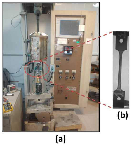 (a)The test setup apparatus for the creep testing and (b) the prepared creep test specimen.