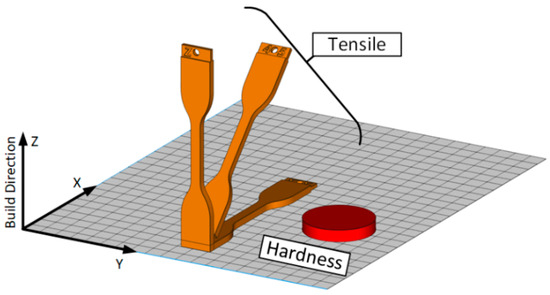 Printing orientations for hardness and tensile testing samples.