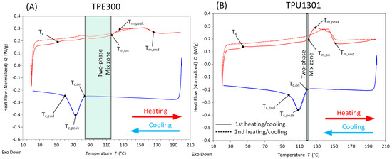 DSC thermograms: (A) TPE300 and (B) TPU1301.